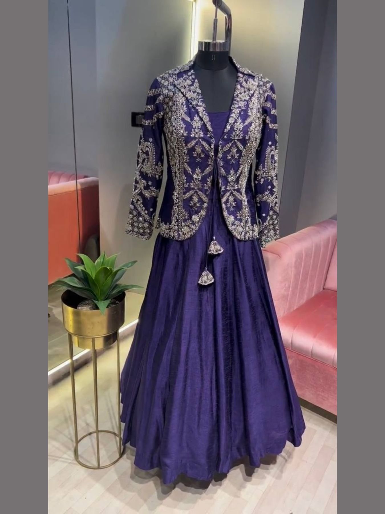 Size ChartIntroducing a new designer heavy chinon koti with gown set, specially designed for elegant party and festive wear. The outfit features a luxurious embroidery sequence work koti with detailed sleeves, paired with a plain chinon gown enhanced by a graceful 3-meter flair. Crafted for comfort with a micro cotton inner in the koti, this ensemble offers both richness and wearability. A perfect choice for wedding functions, festive celebrations, and premium boutique collections, available at wholesale and manufacturer pricing.