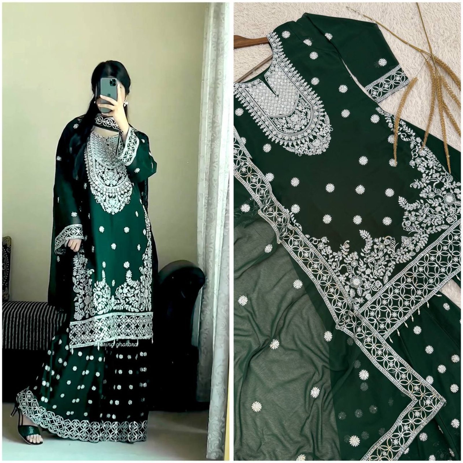 Stylish faux georgette kurti plazzo set featuring elegant embroidery and sequin work. Fully stitched kali plazzo with soft micro cotton lining ensures comfort and premium finish. Ideal festive and party wear collection available at wholesale rates.
