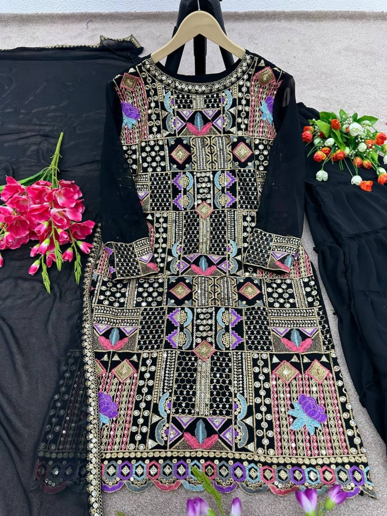 Designer Black Color Top Palazzo And Dupatta With Heavy Embroidery Sequence And Mirror Work