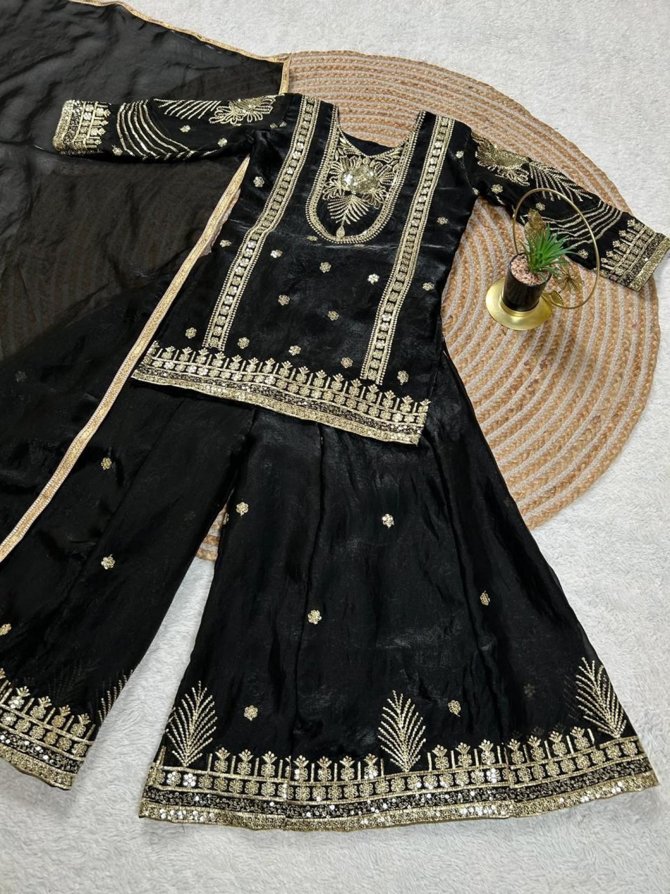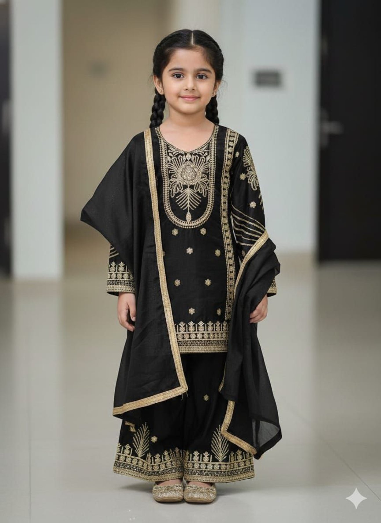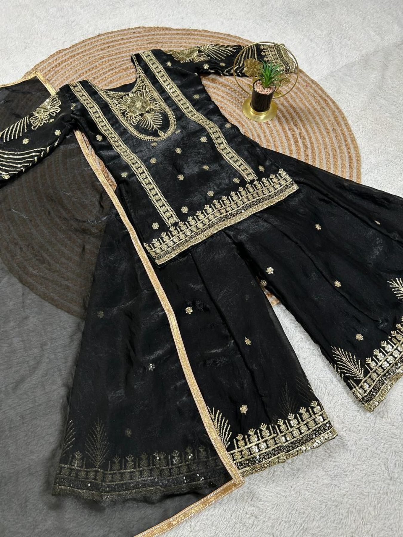 Designer Black Kids Suit Set with Sequins Embroidery for Party Wear