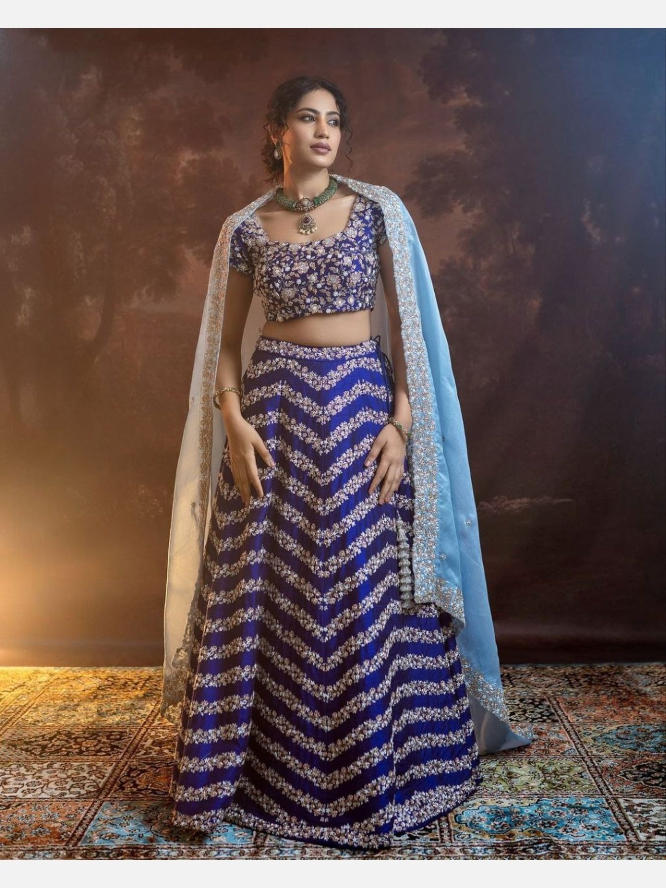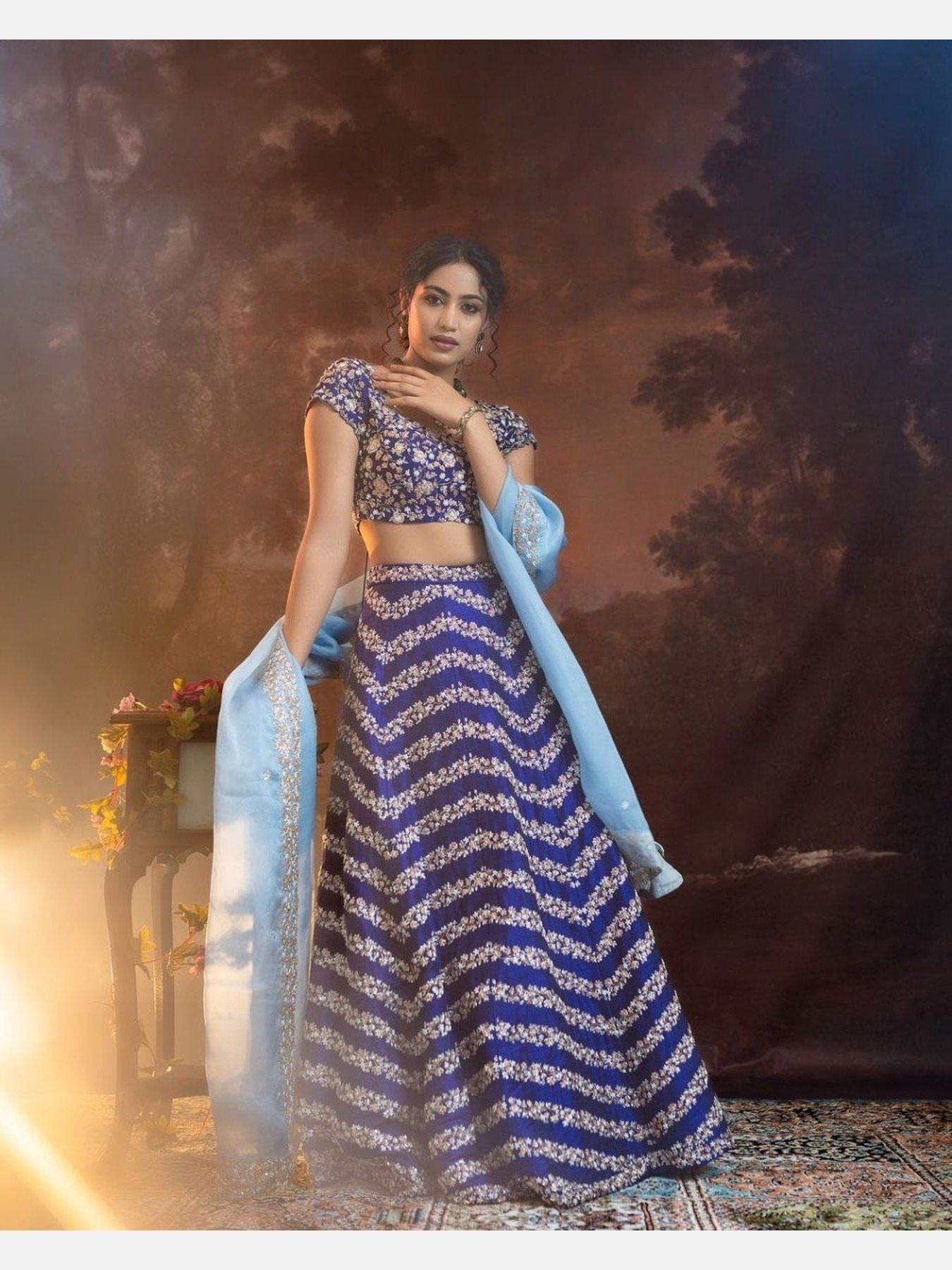 Lehenga : Premium Chinon Silk Embellished With Beautiful Embroidery Work ,Coding Work , Heavy Sequins Work With Heavy Cancan And Canvas With Double Inner Covering With 3.5Mtr Flair( Semi Stitched. )