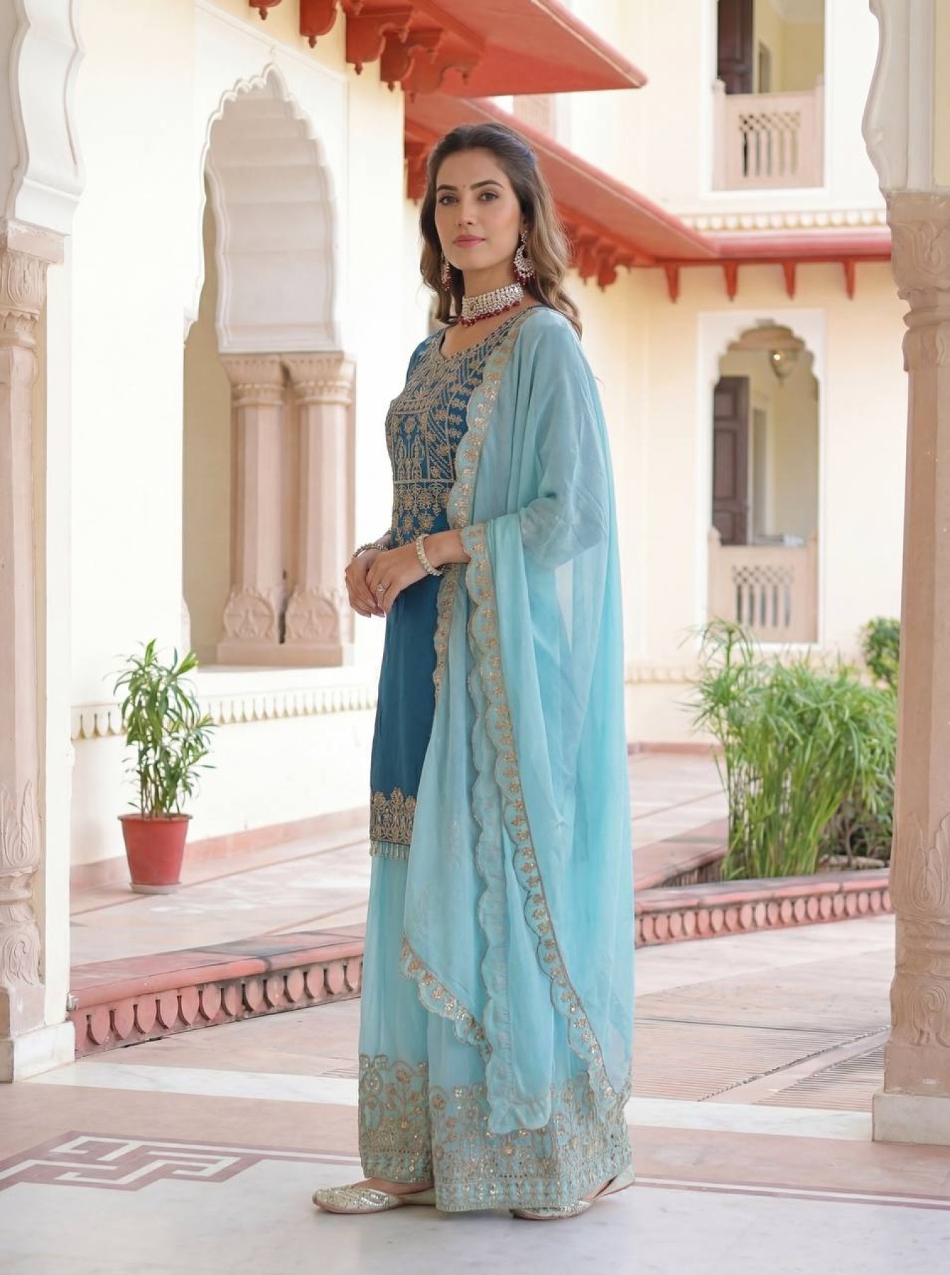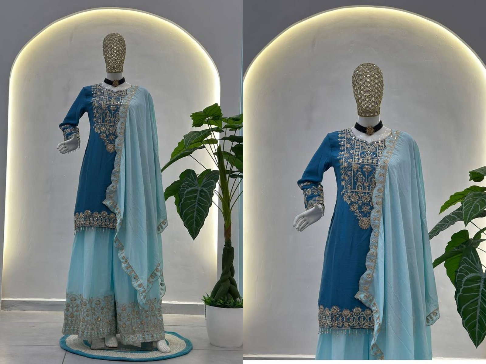 Introducing our New Eid & Festive Special Kurti Palazzo Dress Suit, designed exclusively for boutique showrooms, wholesale buyers, and resale shops. Crafted in premium Chinon Silk, this elegant ensemble features rich embroidery cording sequence work, offering a perfect blend of tradition and modern fashion.