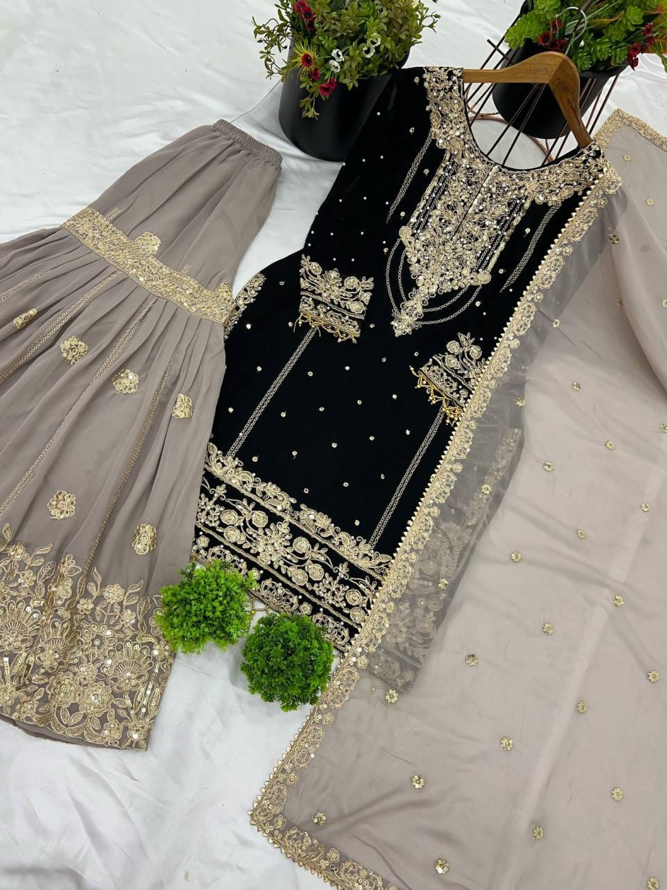 Designer Faux Georgette Plazzo Suit with Embroidery Dori Sequence Work UK USA Wholesale