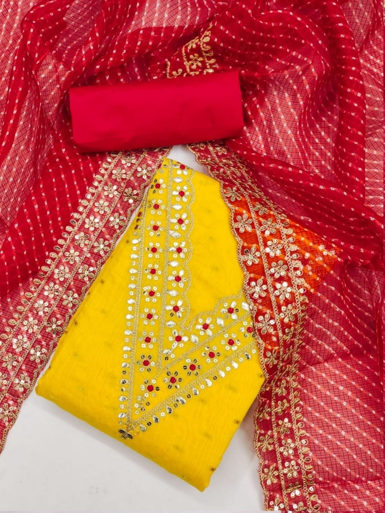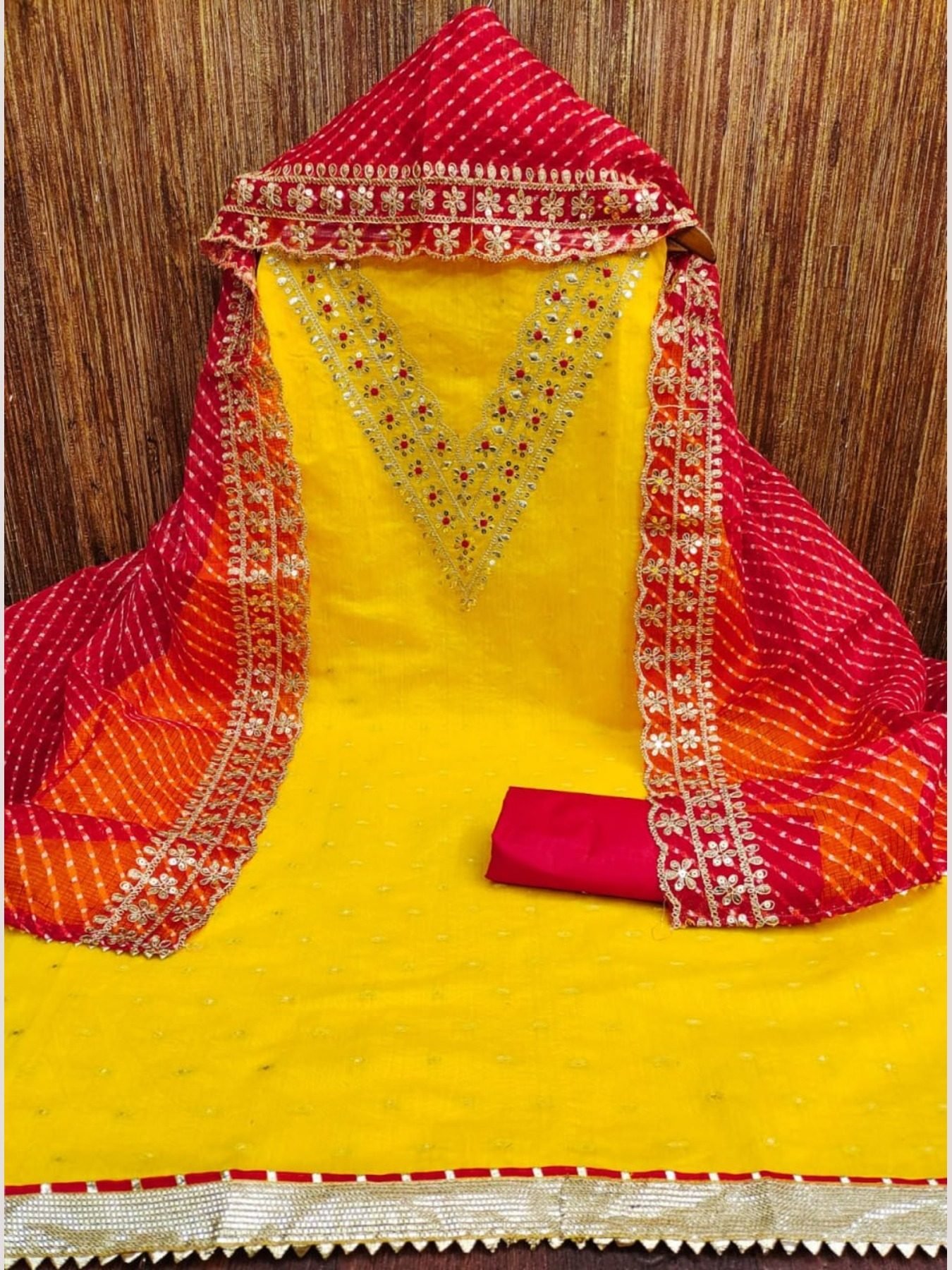 This set offers a blend of comfort and traditional design, suitable for casual or semi-formal occasions. The "work" on the dupatta refers to additional embellishments or embroidery that adds a touch of elegance to the overall set. The affordable price makes it an attractive option for those looking for stylish yet budget-friendly ethnic wear.