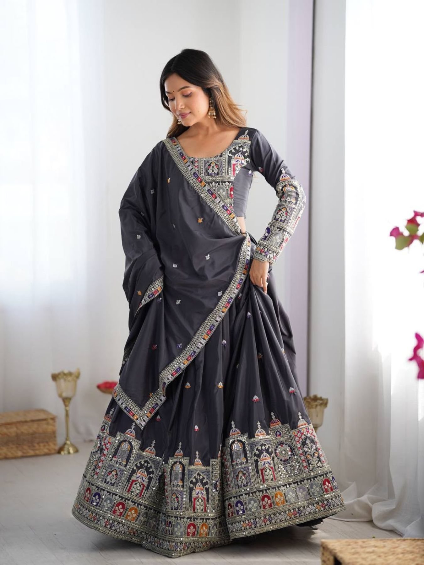 Elevate your style with this stunning lehenga set, designed with luxurious natural crep silk fabric and intricate coding dori embroidery, ideal for any grand occasion.