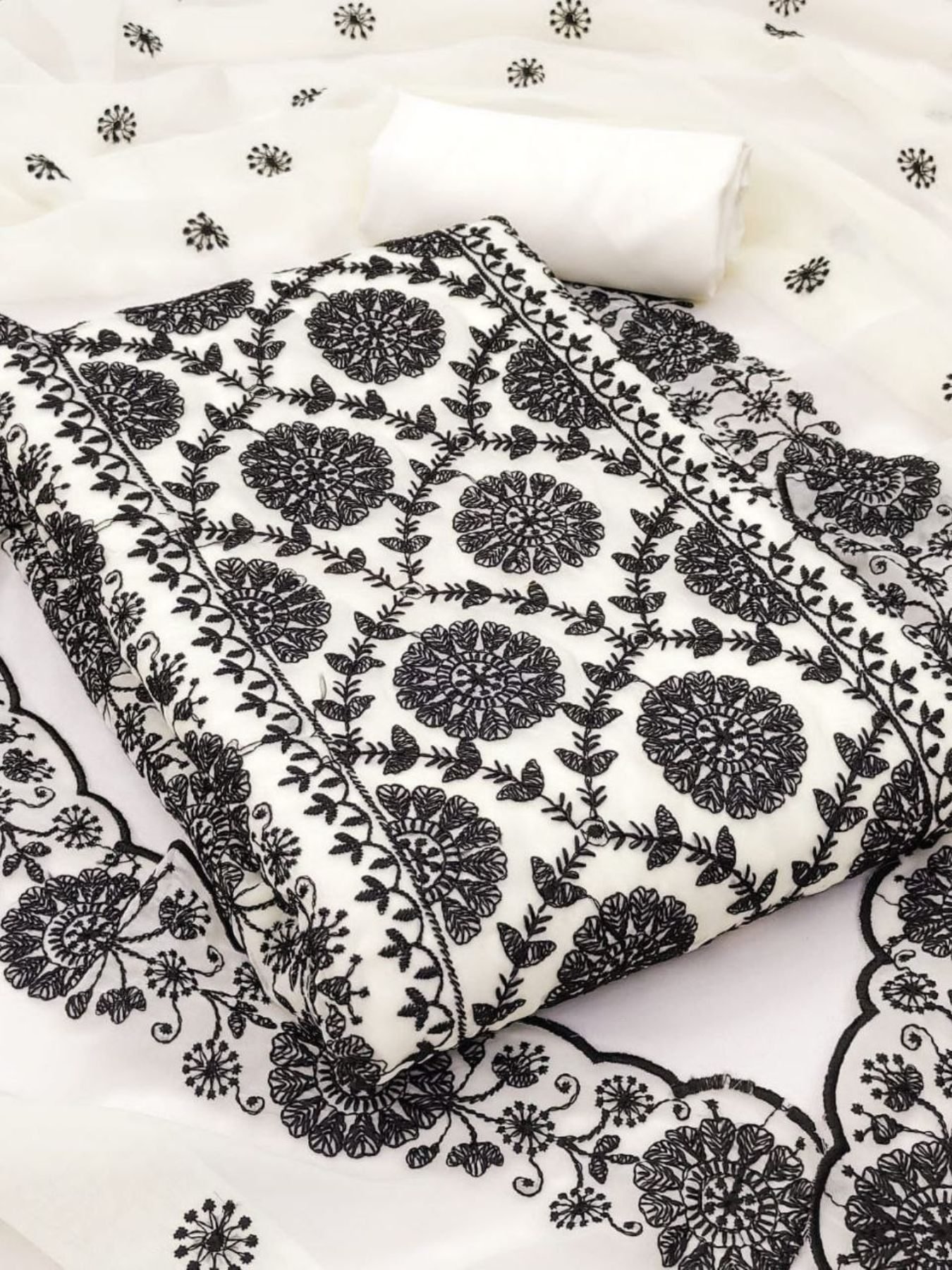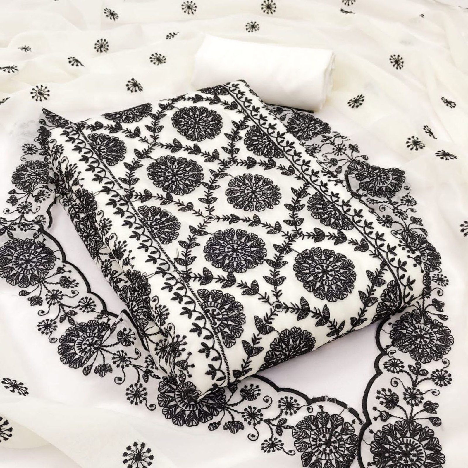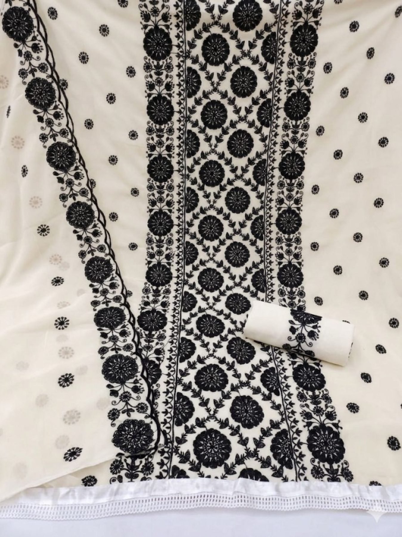 Designer Off WhiteSoft Georgette Suit Set with Fine Thread Work Detailing