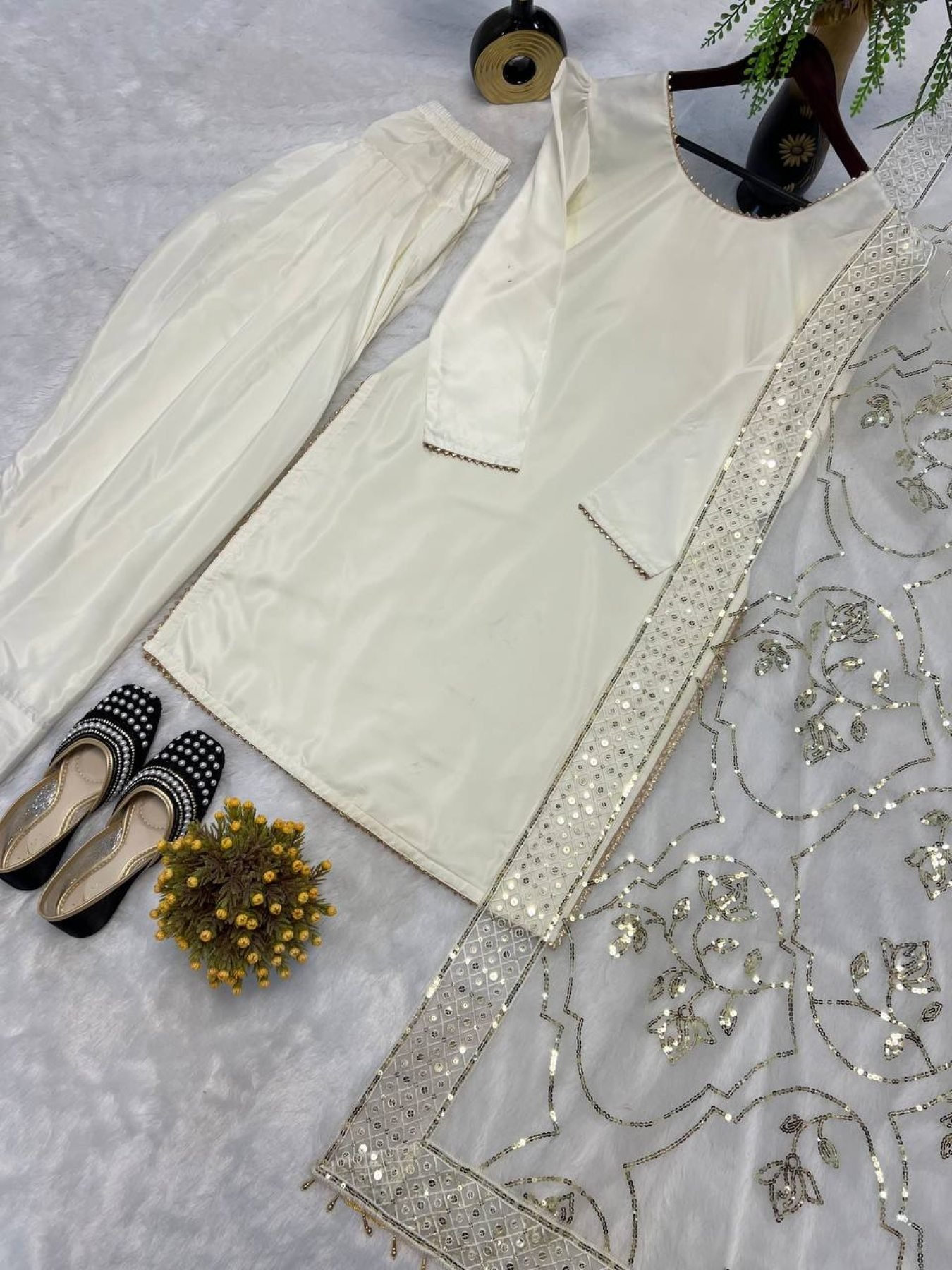 Step into festive glamour with this designer party wear top paired with a Farshi Salwar, crafted from heavy natural crepe silk.Adorned with multi-needle sequins embroidery on the dupatta and a chic canvas belt on the salwar, this set is perfect for celebrations.Fully stitched and ready-to-wear, it’s ideal for weddings, parties, and festive occasions.