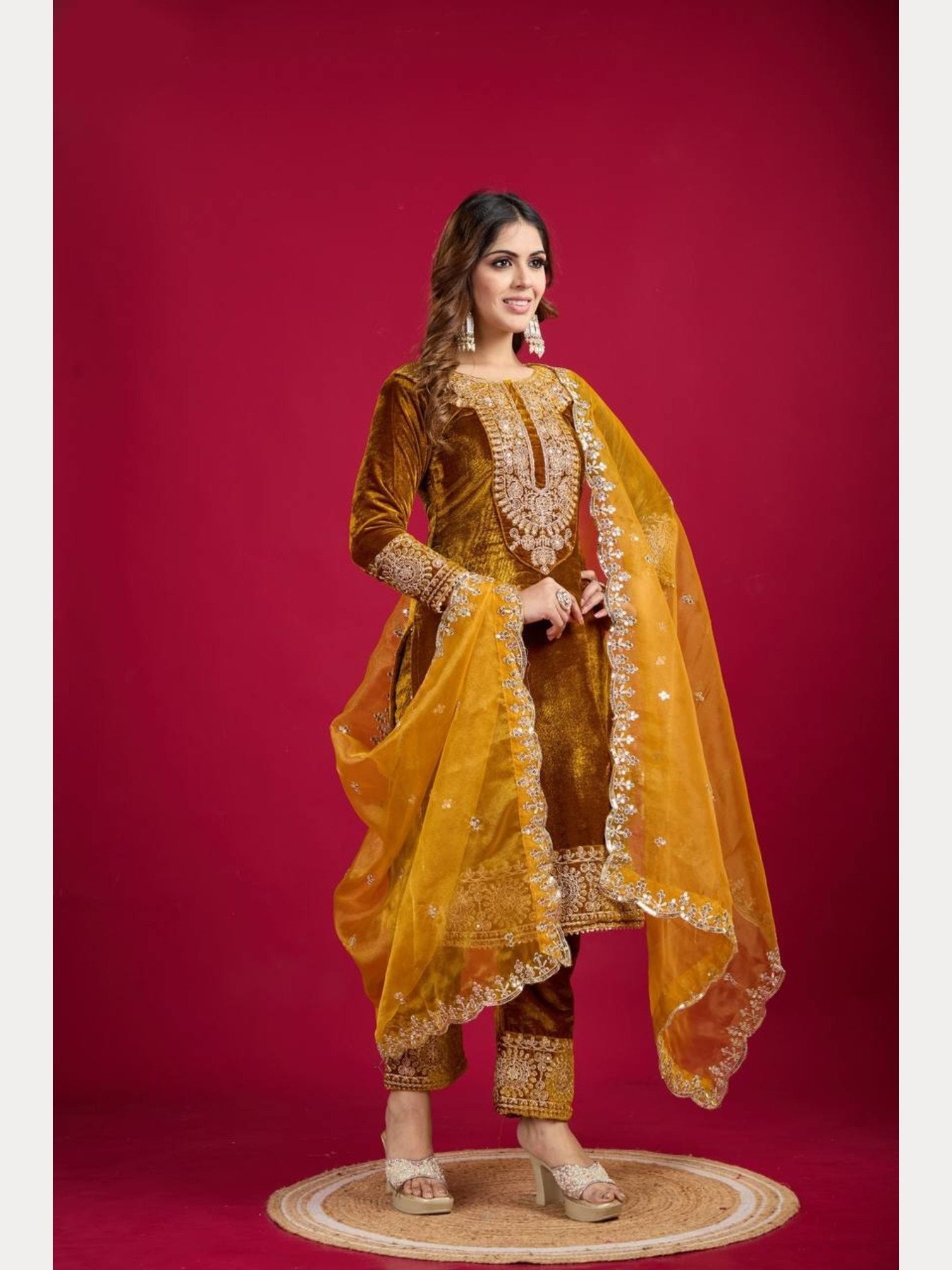 Bottom Fabric: Viscose Velvet with Embroidery sequence work (Full Stitched )