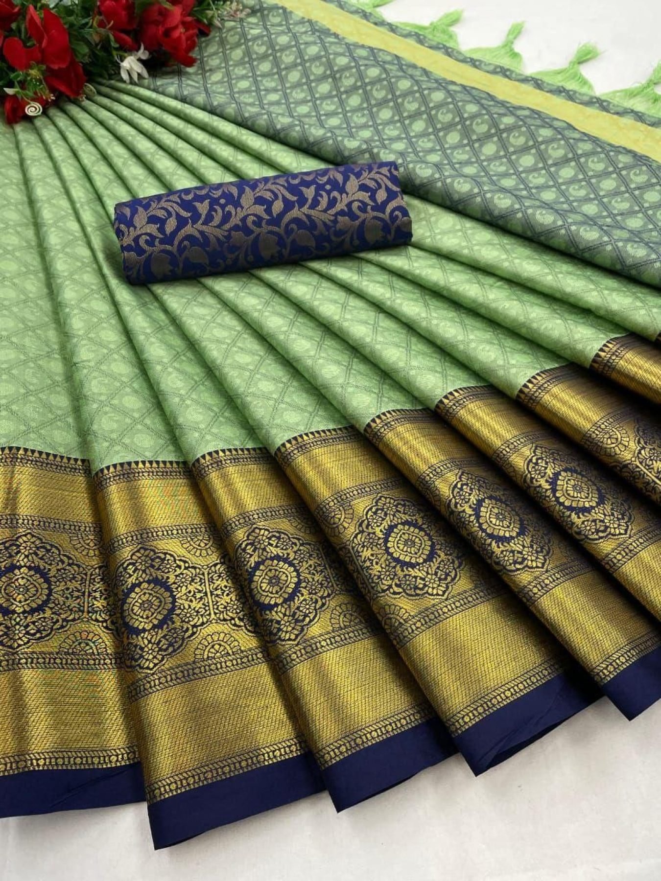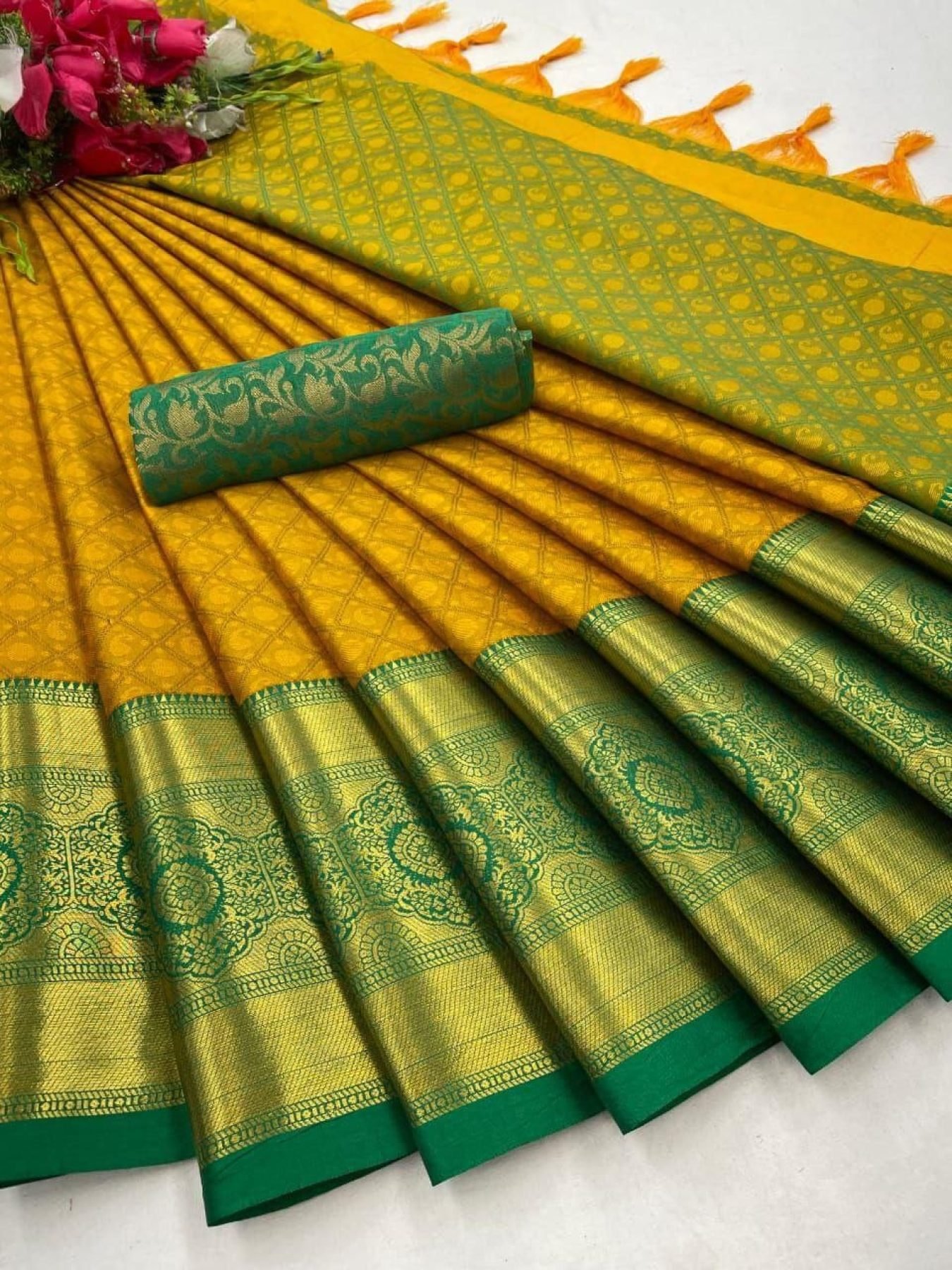 Saree 5.5 MTR and 0.80 MTR Contrast Matching Blouse With Contrast Pallu…