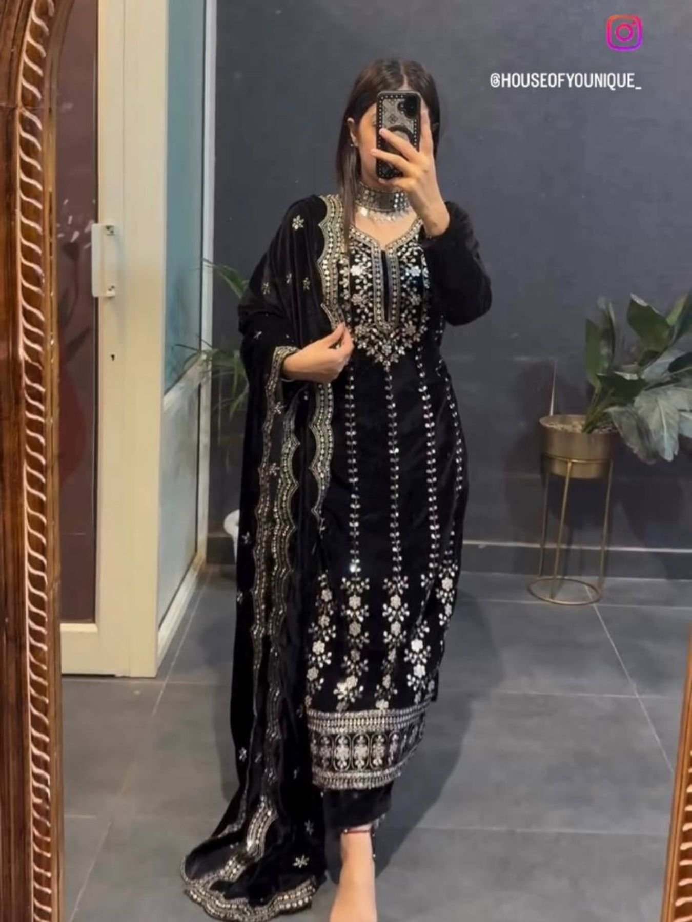Presenting New Velvet Top-Pant Dupatta Set – Fully Stitched and Ready to Wear
