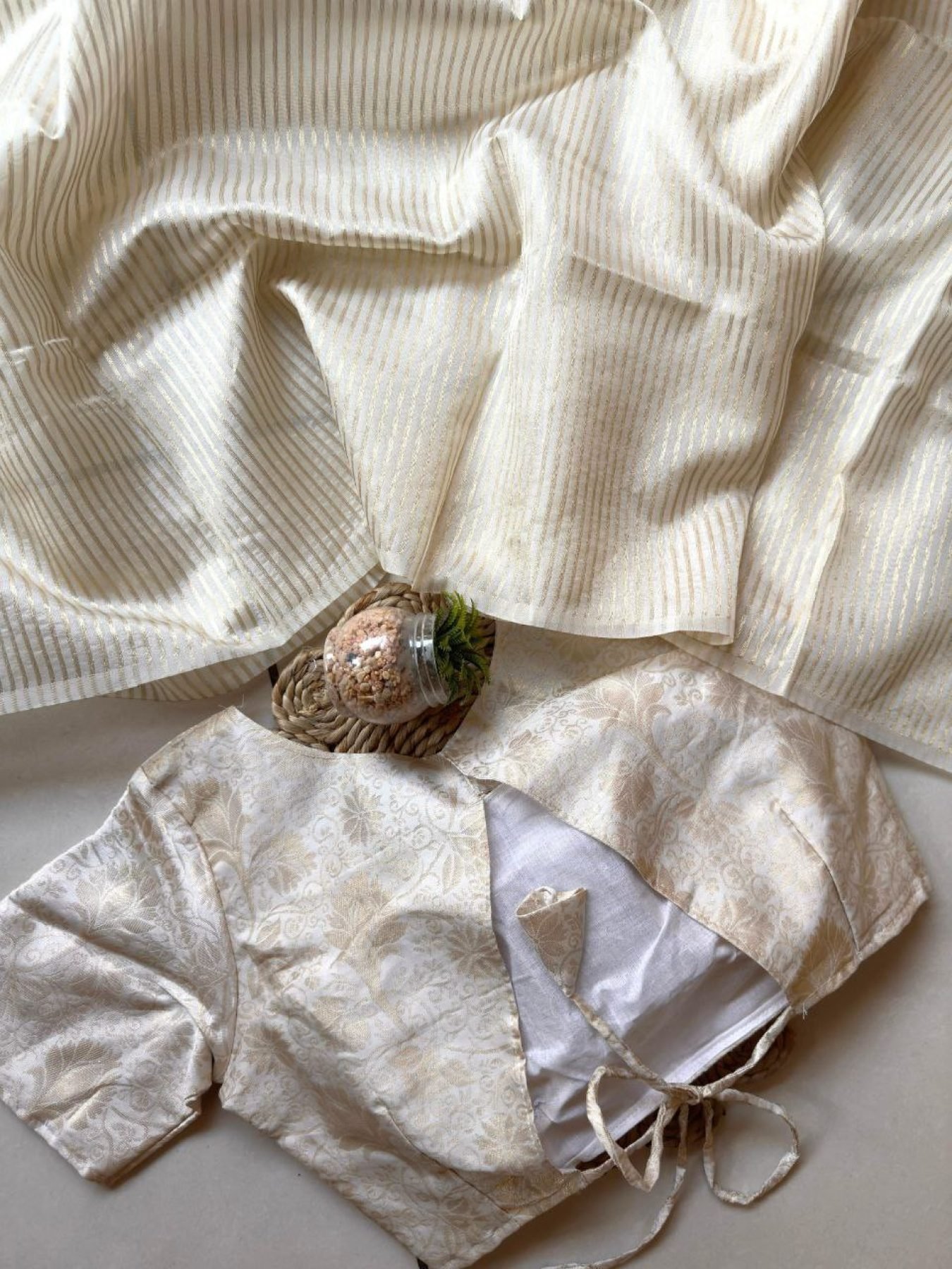 Designer Zari Stripe Saree in Soft Organza with Jacquard Blouse Premium Collection