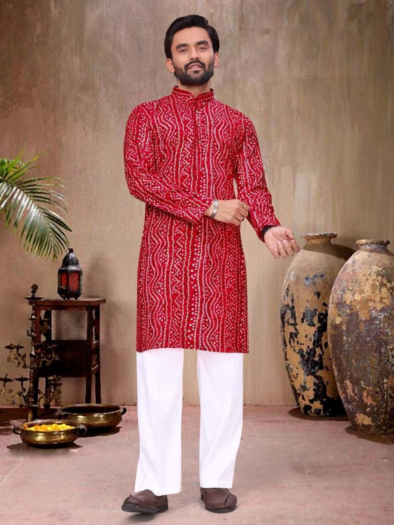 Durable Red Couple Combo Ethnic Wear for Wedding and Festive Wear