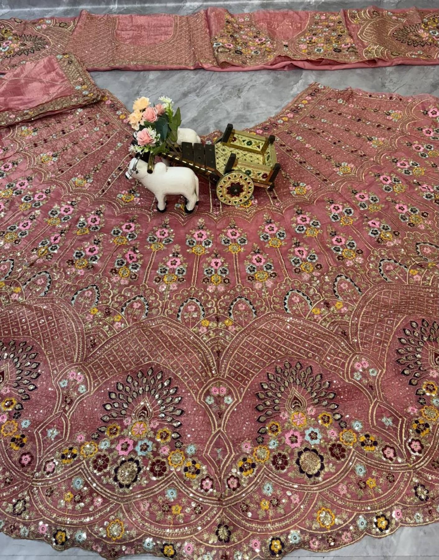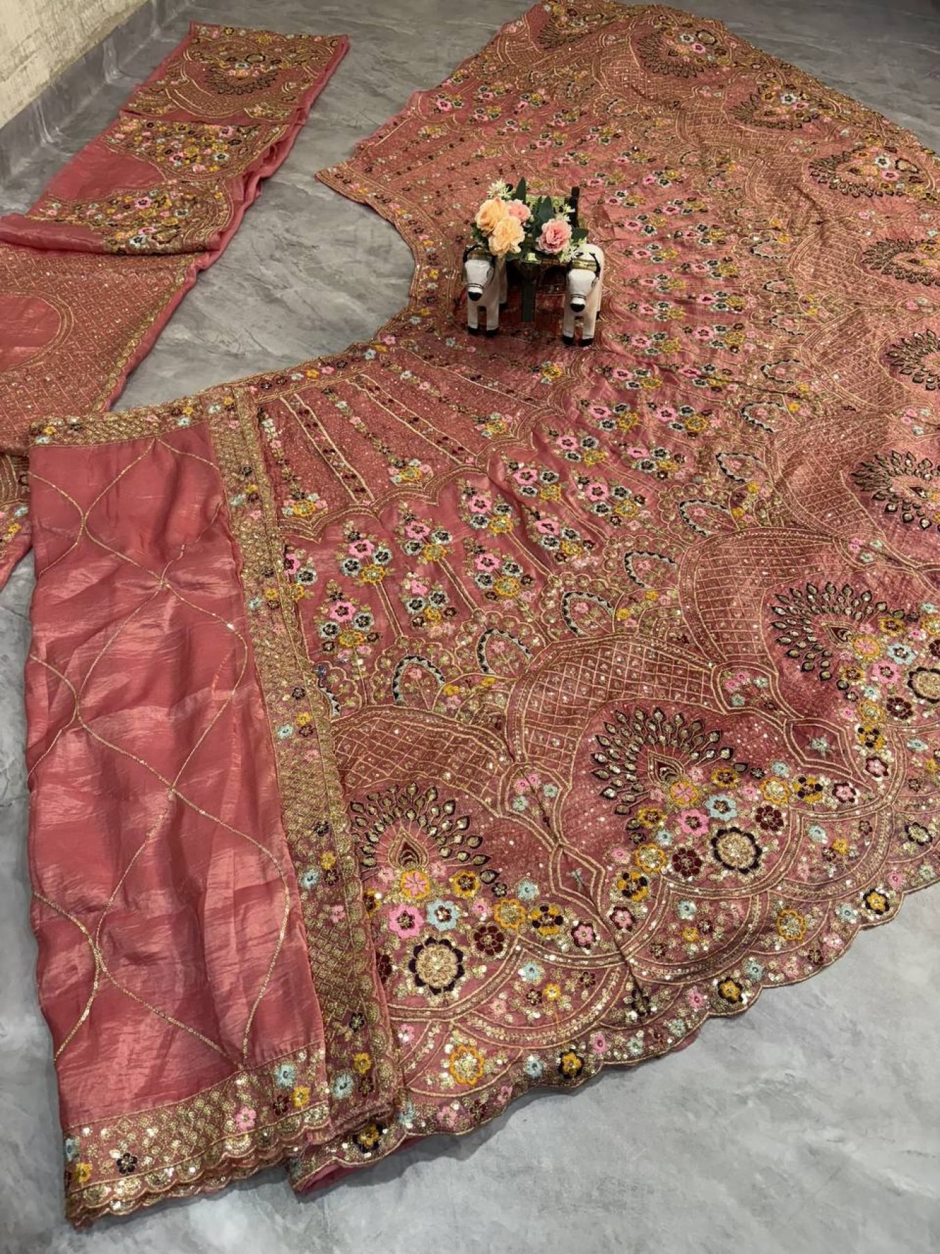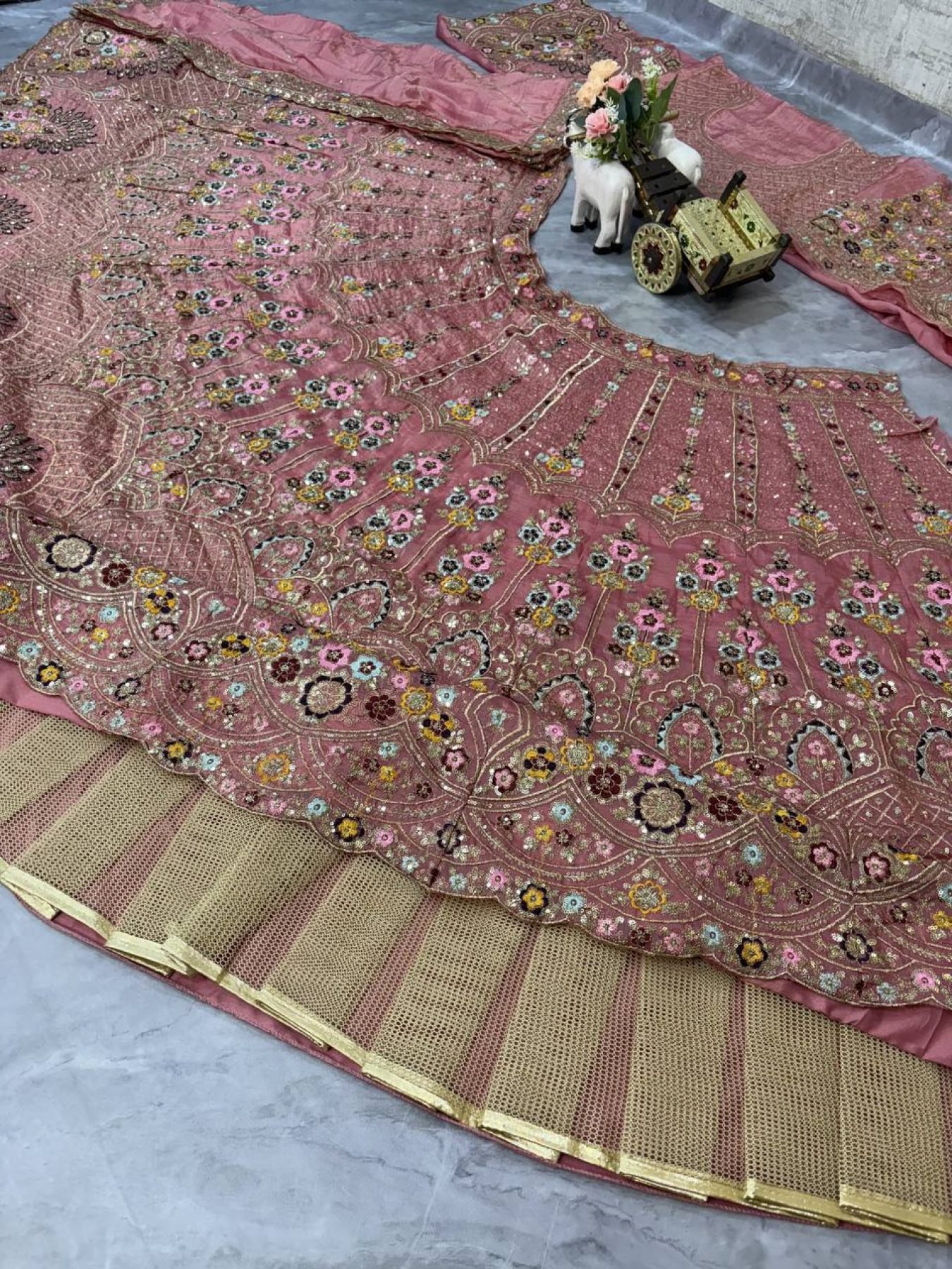 Dusty Pink Gold Crush Bridal Lehenga with Heavy Sequins Work Wedding Special