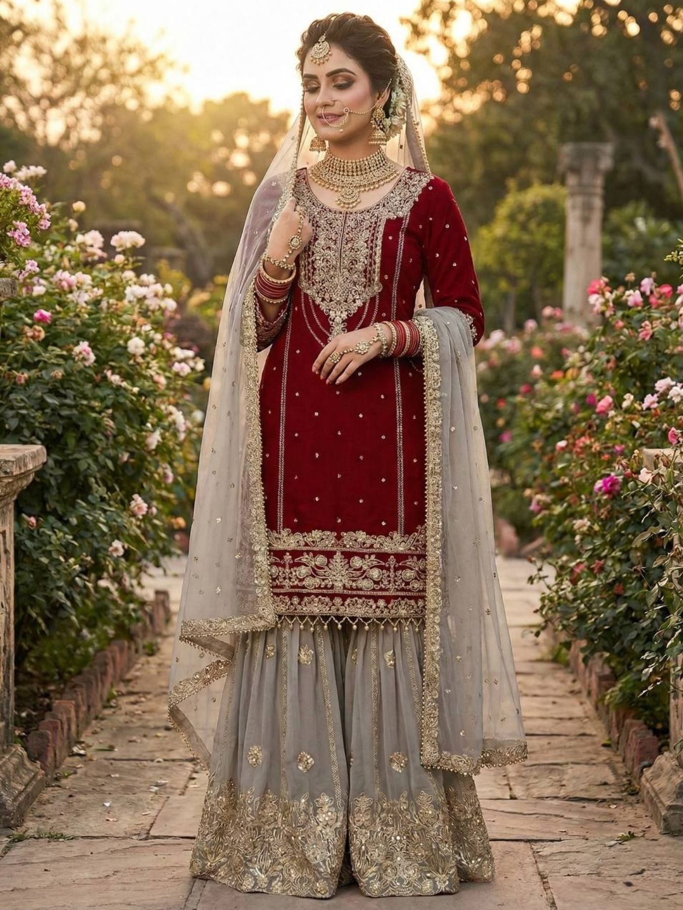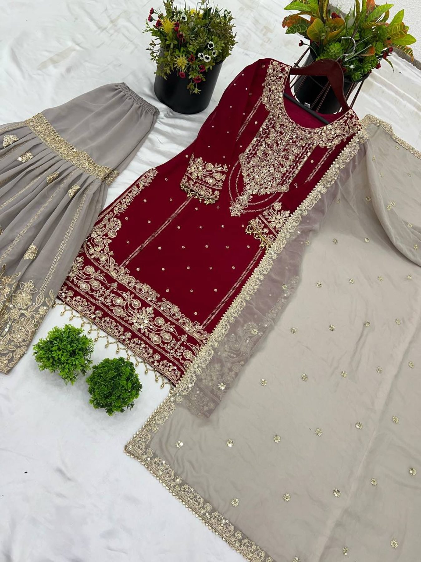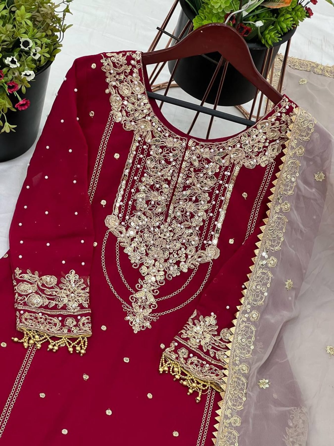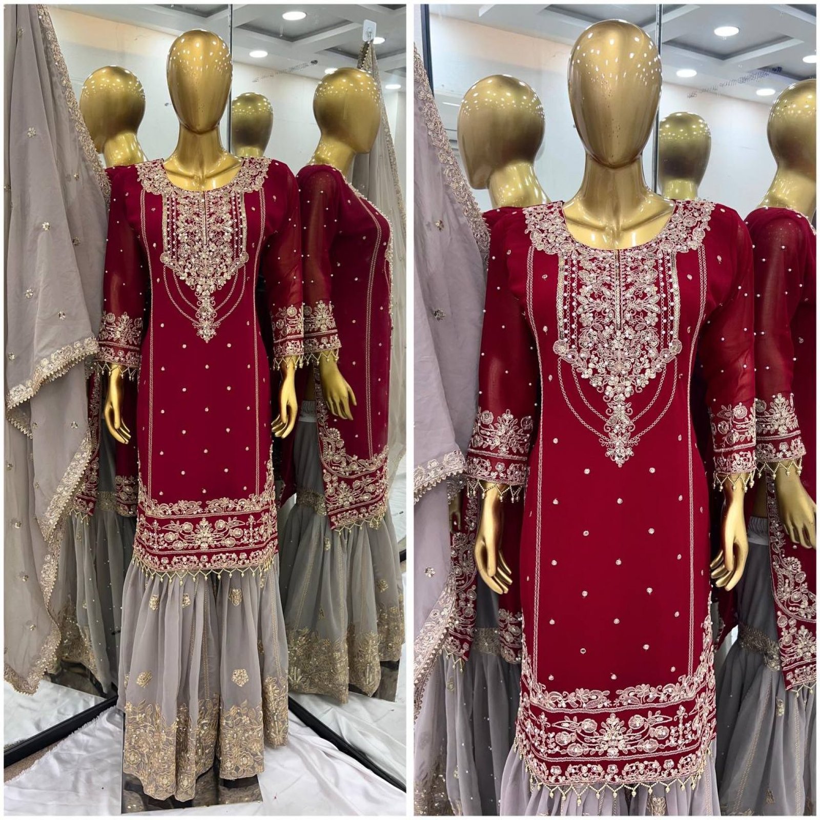 Dupatta Fabric: Heavy faux georgette with embroidery coding dori-sequence work, rivet moti work and lace border