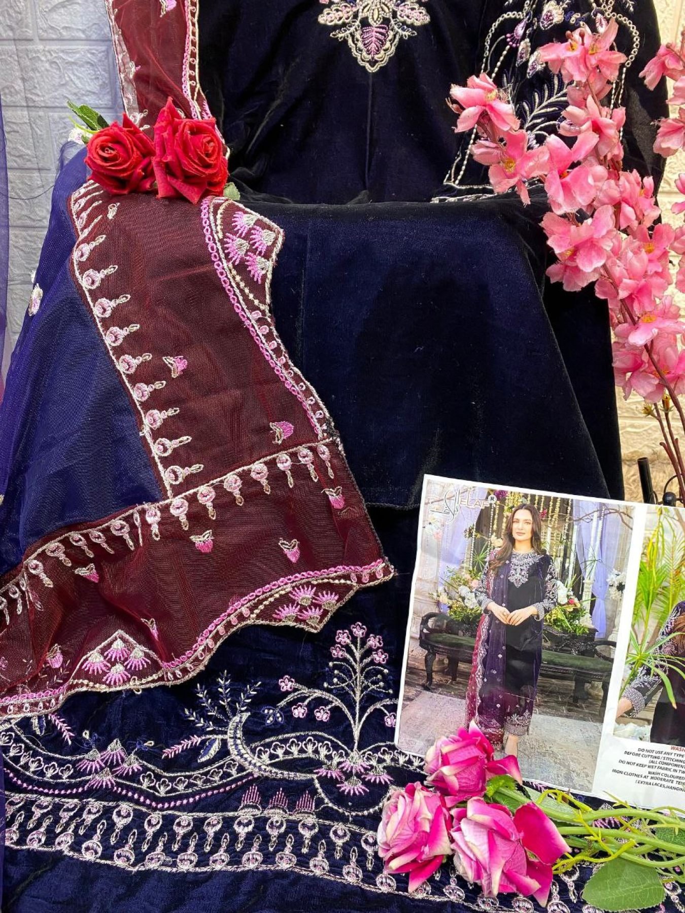 Elaf S 2 Velvet Pakistani Suit Embroidery Butterfly Net Dupatta for Wholesaler and Supplier