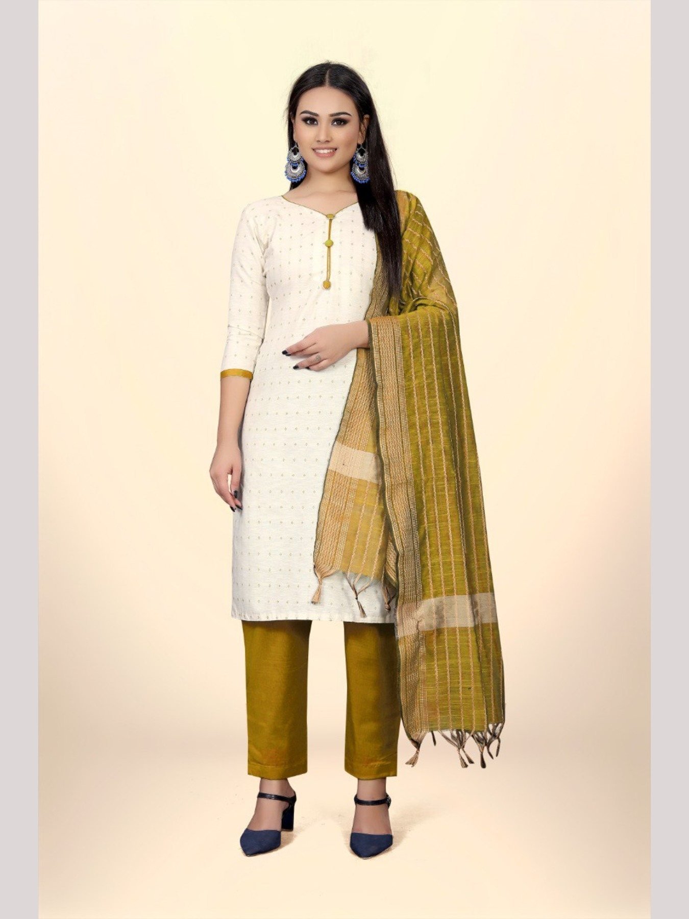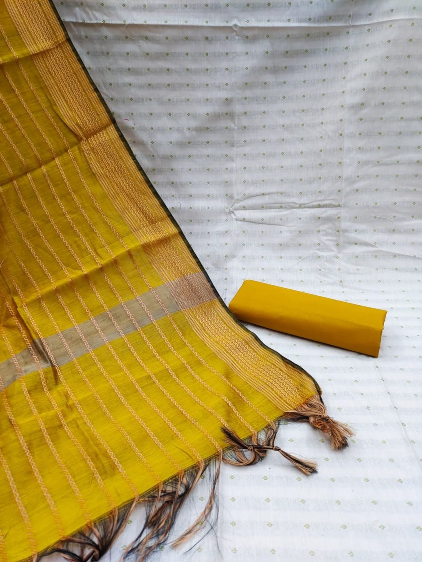 Elegant Cotton Jacquard Dress Material With Cotton Bottom And Dupatta