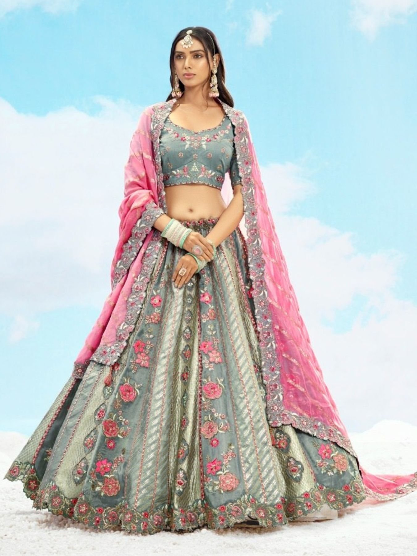 Design: Features exquisite cutwork border, stone accents, sequence, and embroidery weaving butti work – a perfect blend of glamour and tradition