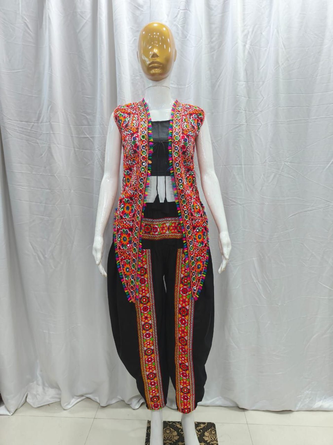 Introducing our Koti Set with original Gamdi hand mirror work – perfect for festive occasions and cultural events. Comes with heavy crape dhoti and blouse, and a stylish free-size jacket. Available in S to XXL, making it a perfect wholesale pick for resellers.