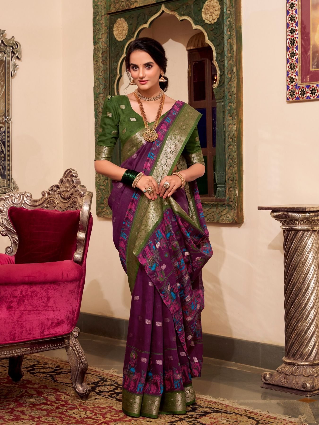 Elegant Poly Cotton Saree – Kalamkari Print with Rich Zari Work Textile Manufacturer