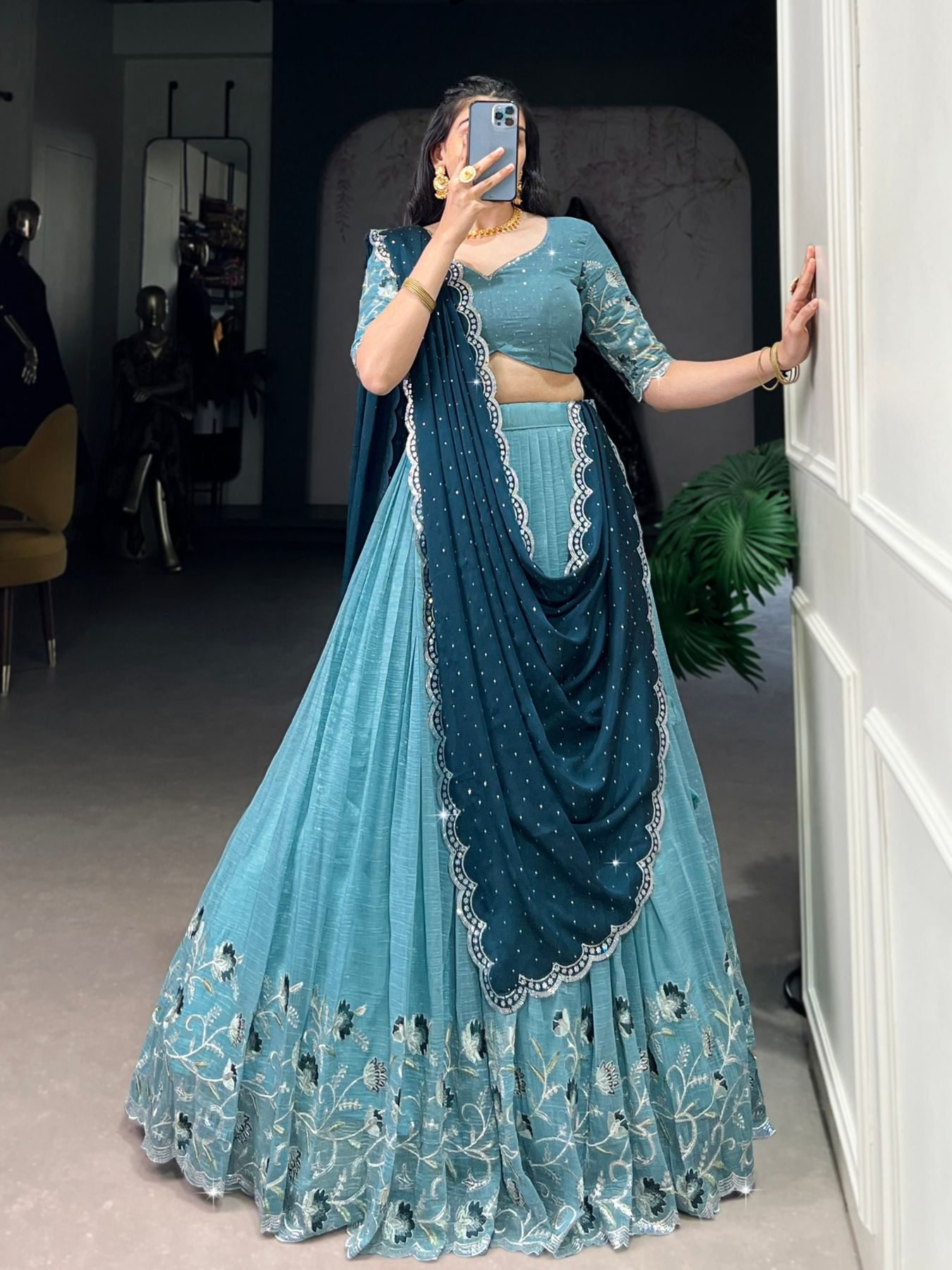 Elegant Silver Glossy Lehenga Choli Designer Sequin Work New Collection for Resellers