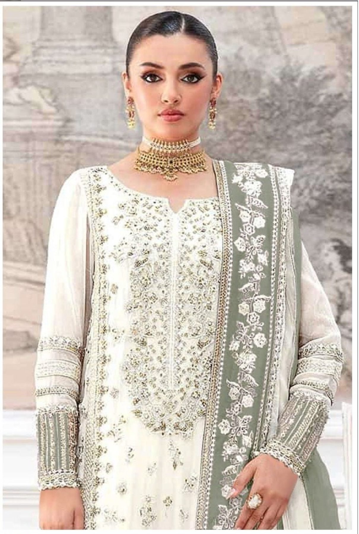Elegant White Chiffon Pakistani Suit with Heavy Embroidery