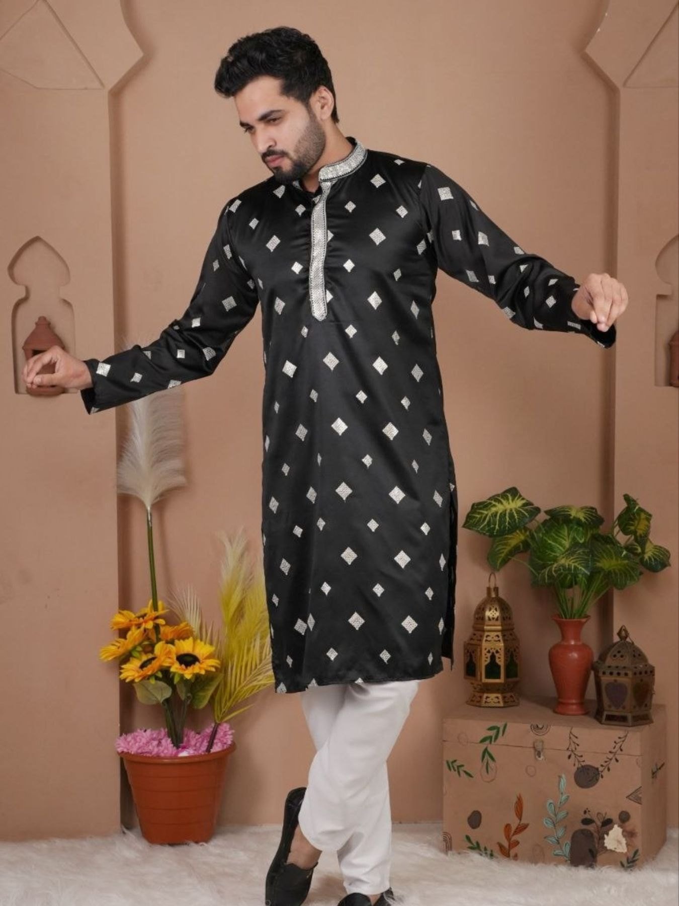 Enchanting Black Silk Kurta Set with Embroidery for Special Occasions at Low Price