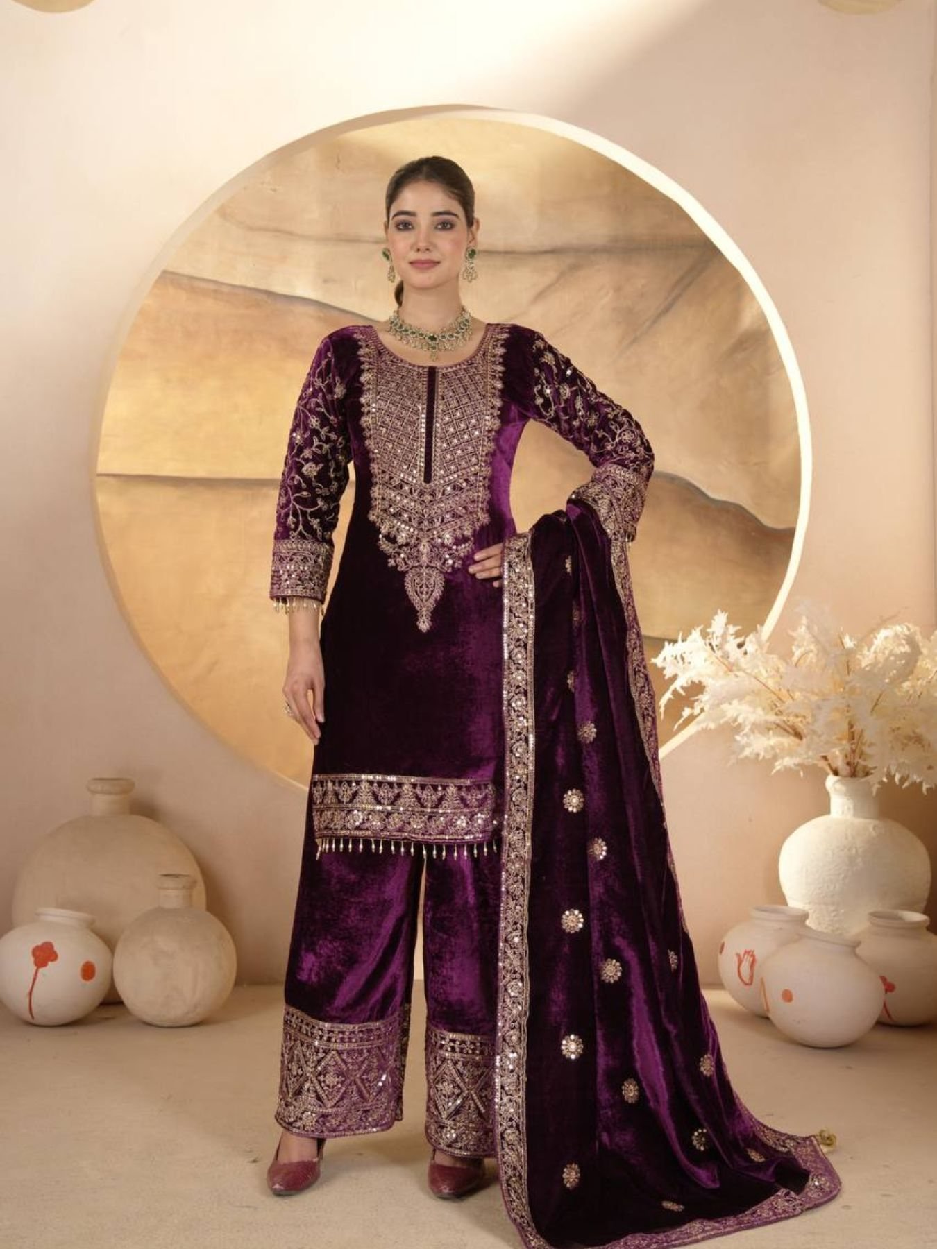 Pant Fabric : Pure Heavy Viscose Velvet With Heavy Embroidery Coding Sequence Work (Fully Stitched)