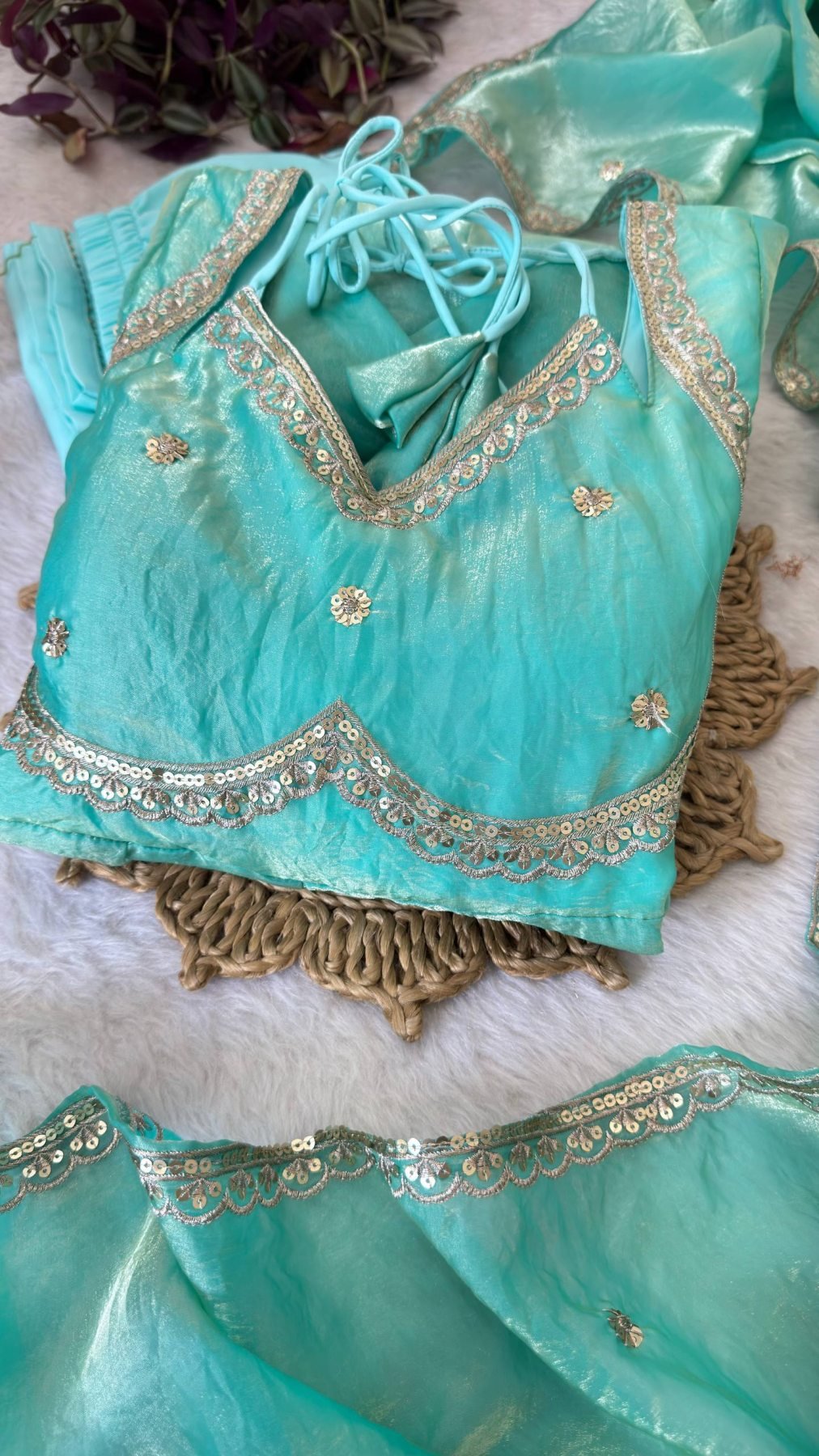 Work: All Over Butti Sequins Work with Four Side Embroidery Lace Border