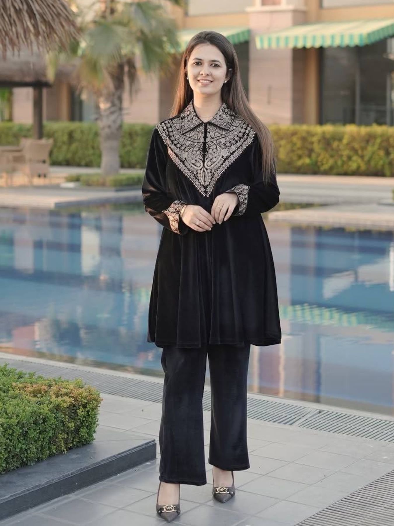 Stay stylish and warm this season with our designer winter velvet kurta plazzo set, crafted for elegant festive wear. The kurta features beautiful sequin embroidery work on both front and back, adding a rich and luxurious appeal. Paired with a fully stitched velvet plazzo and finished with a soft micro inner for comfort, this outfit is ideal for winter celebrations, evening functions, and festive gatherings. A premium winter collection for boutique owners, wholesalers, and international buyers at manufacturer pricing.