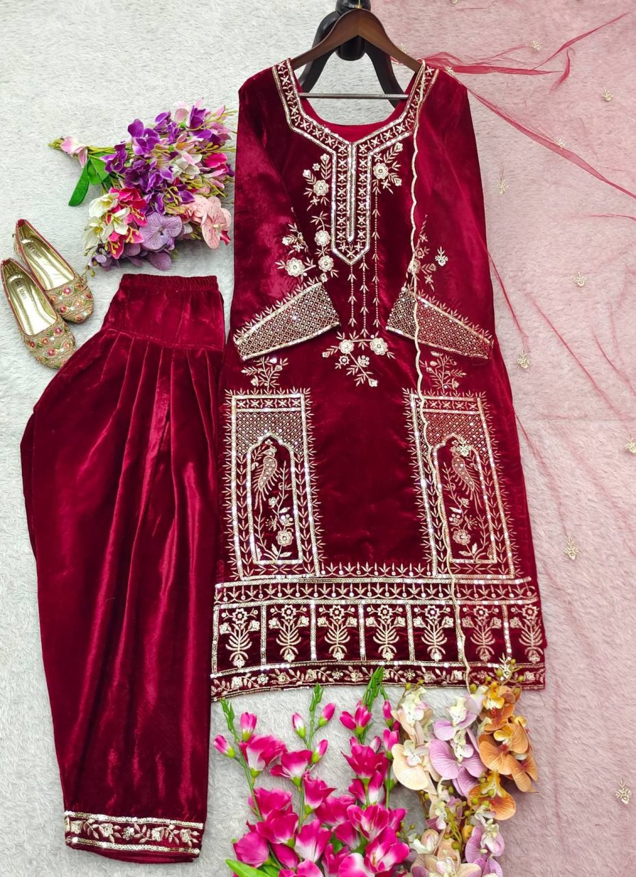 Experience luxury winter wear with this premium viscose velvet Patiyala suit featuring rich 5mm sequence embroidery.