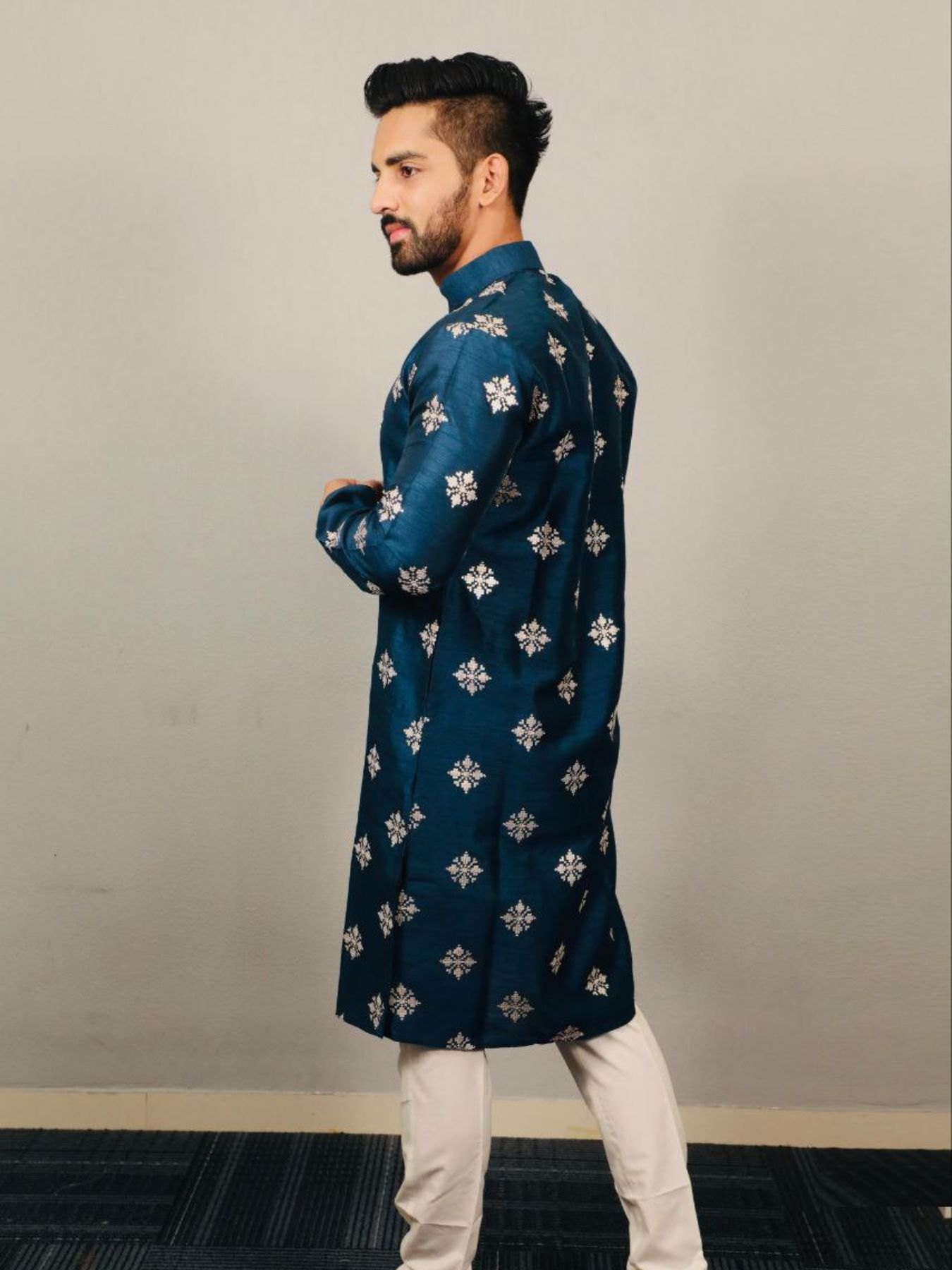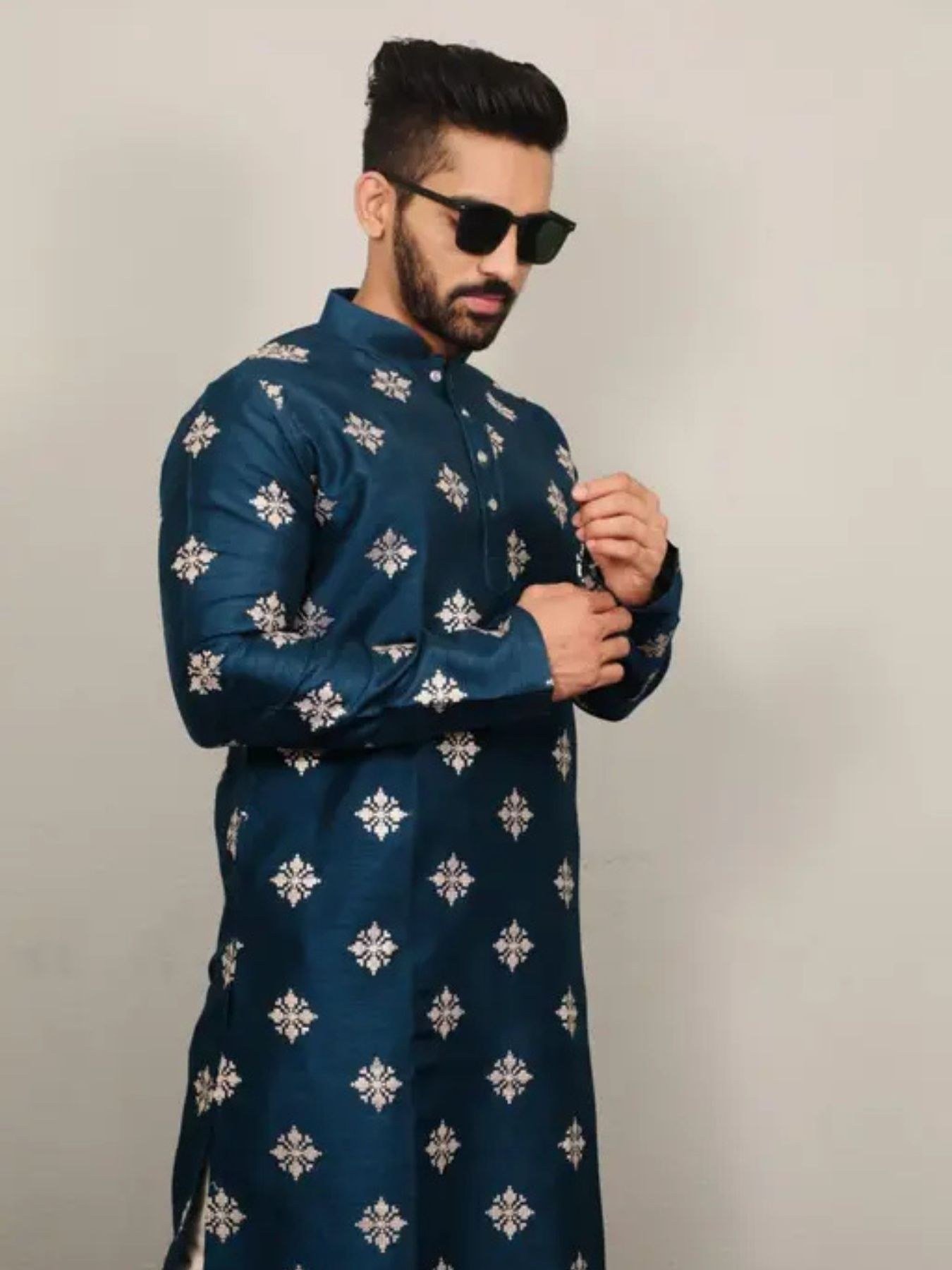 Ethnic Wear Kurta Pajama Set for Men Soft Silk Feel with Signature Embroidery Design