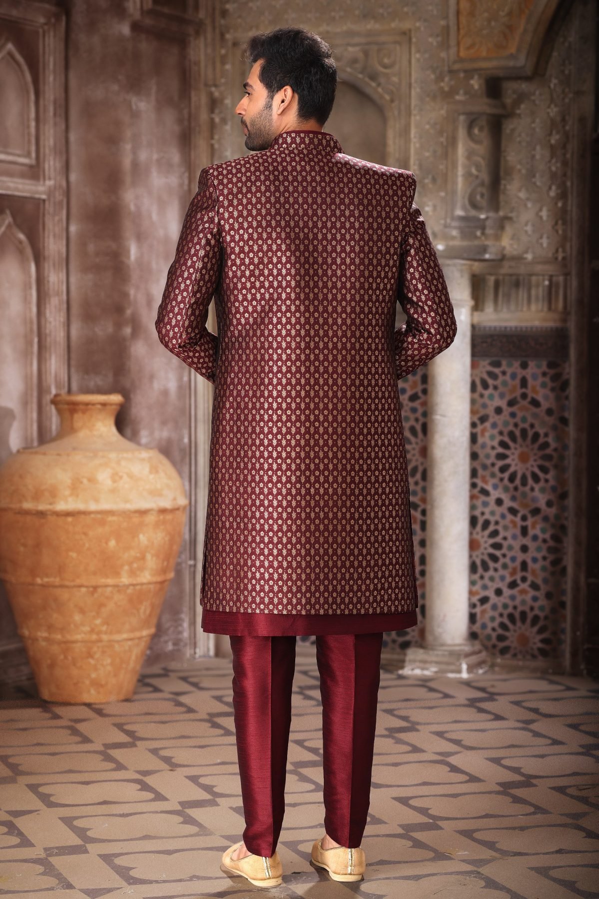 Exceptional Maroon Premium Jacket Kurta Set for Men with Aligarhi Bottom