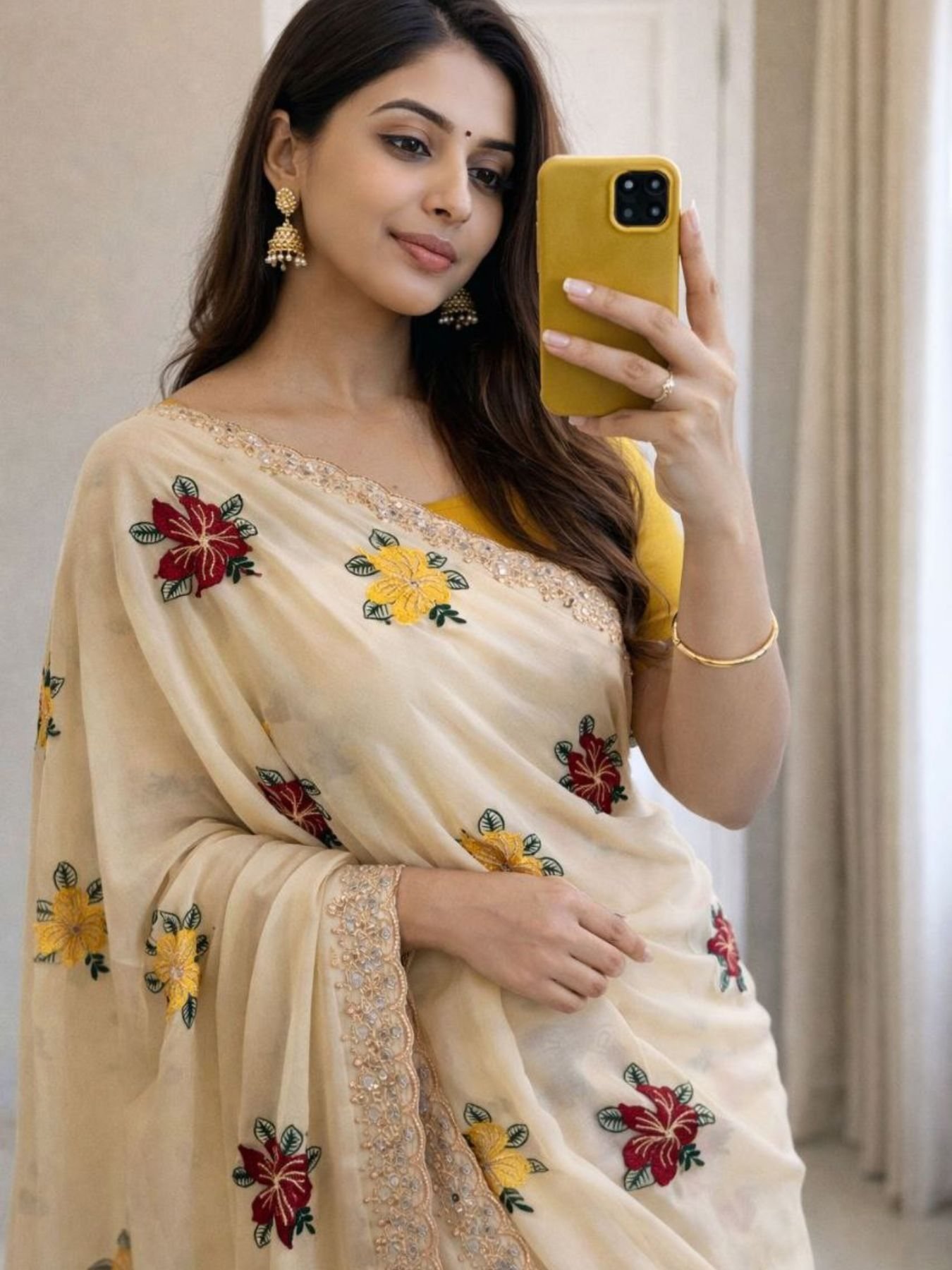 Matching: Perfectly Matches Saree Embroidery & Mirror Work