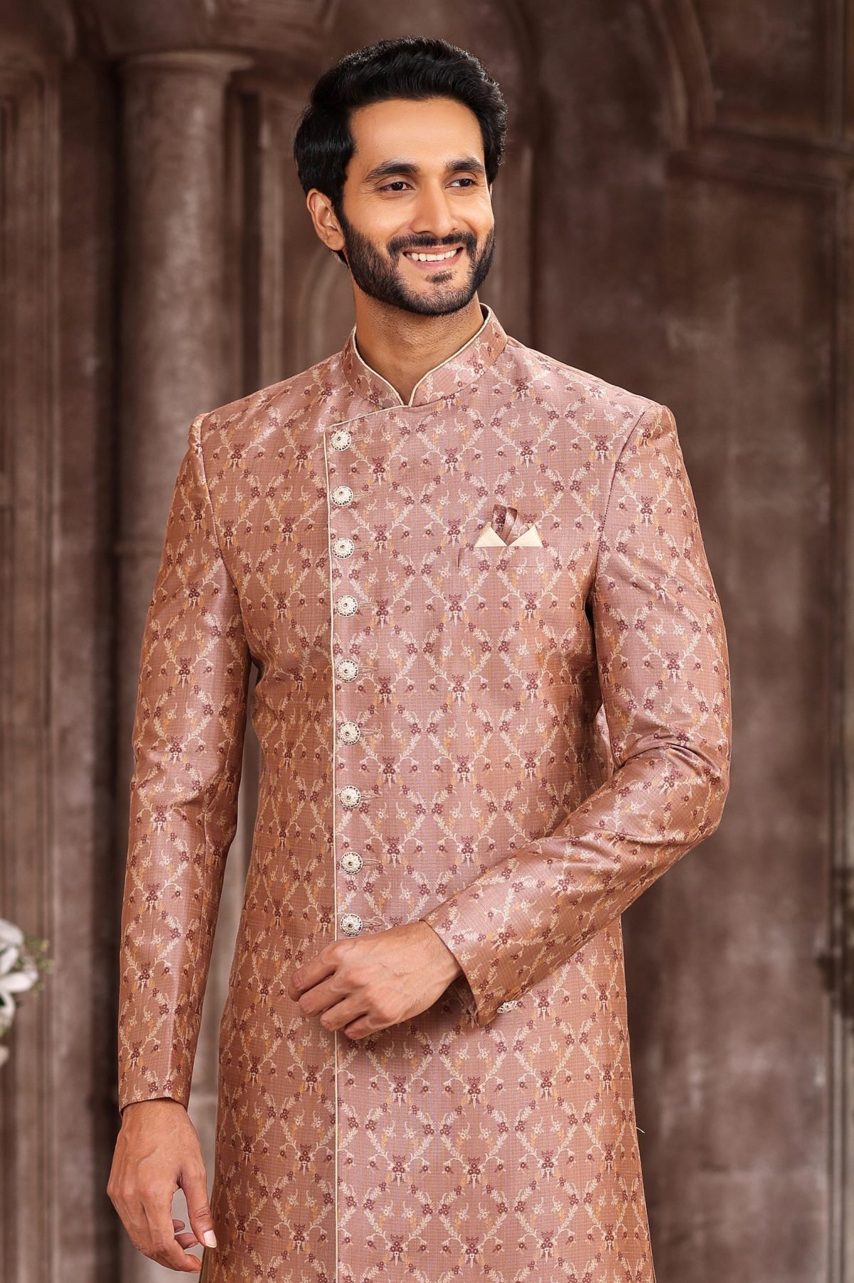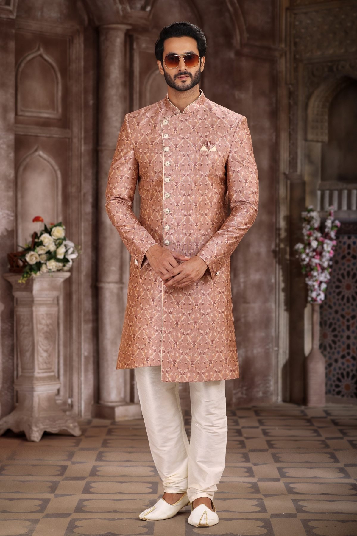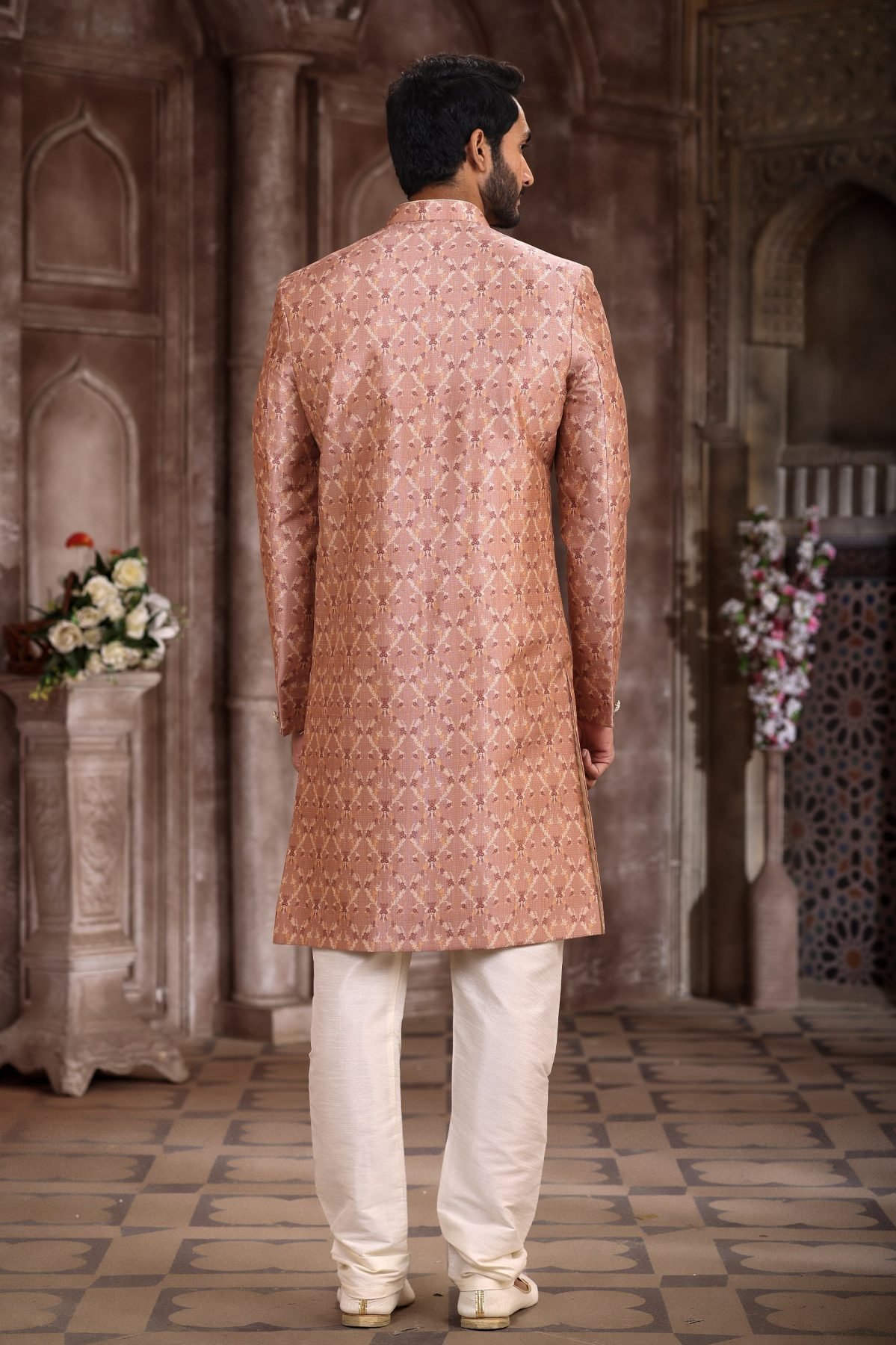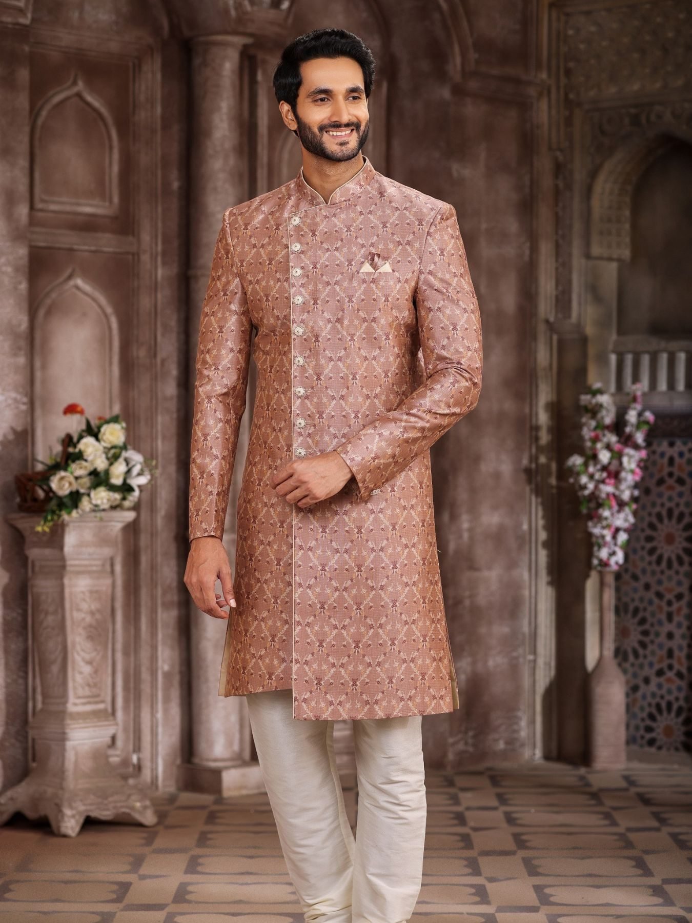 Exclusive Dusty Peach Indo-Western Sherwani with Digital Print And Embroidery