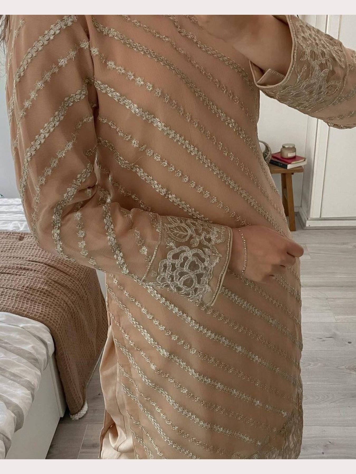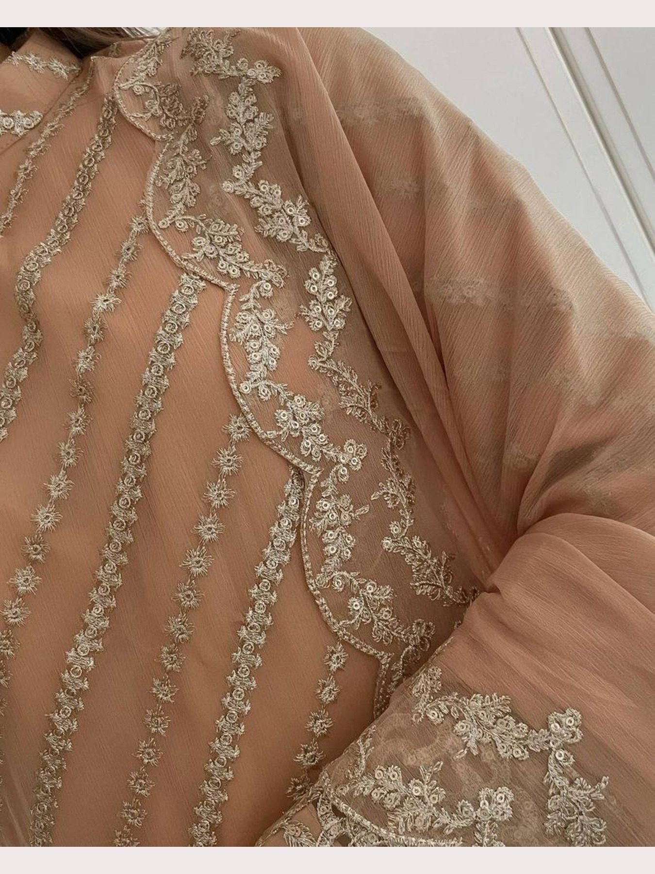 KURTA:- HEAVY GEORGETTE WITH BEAUTIFUL ZARI EMBROIDERY WORK & CUT WORK (FULLY STITCHED)