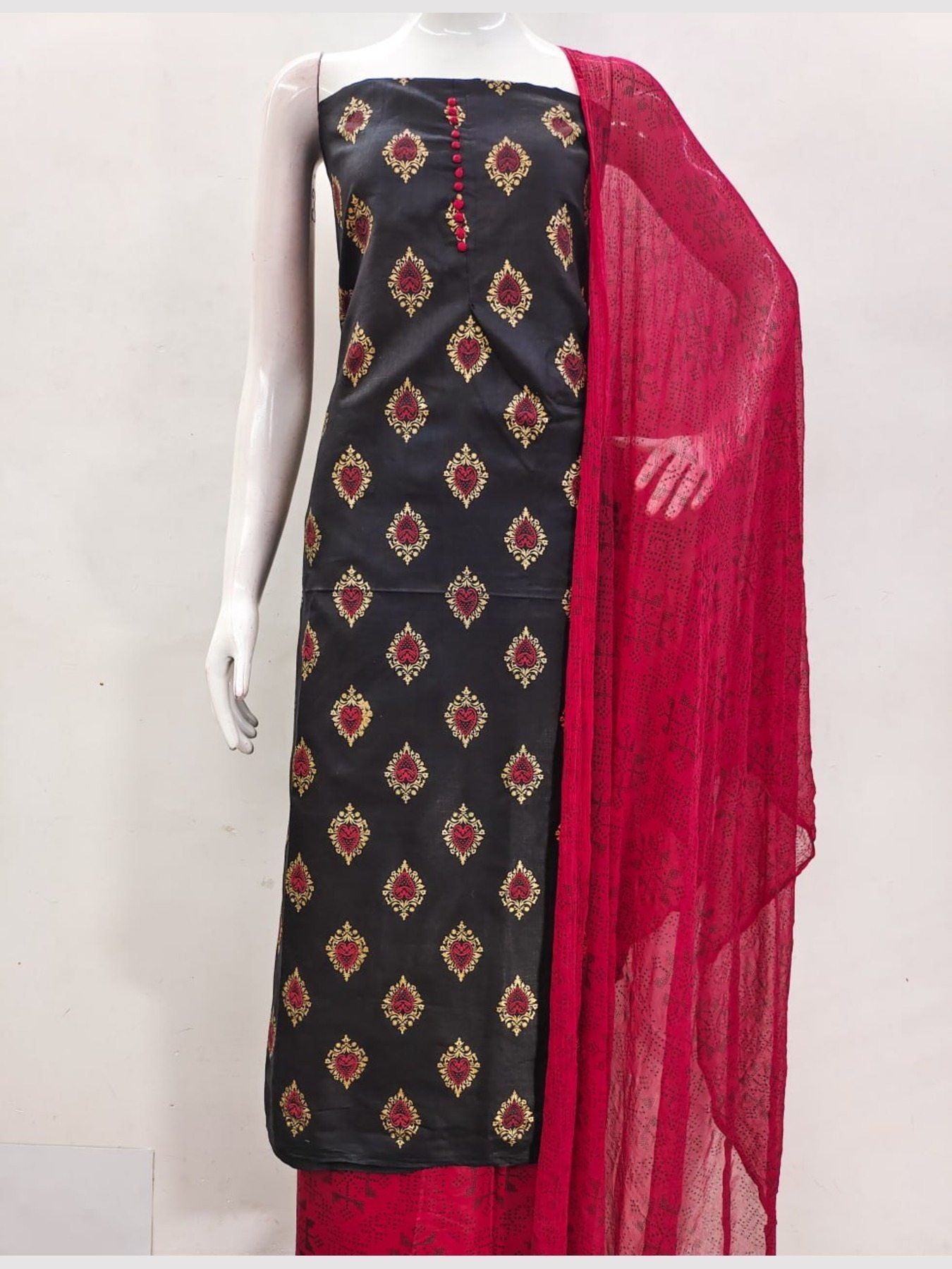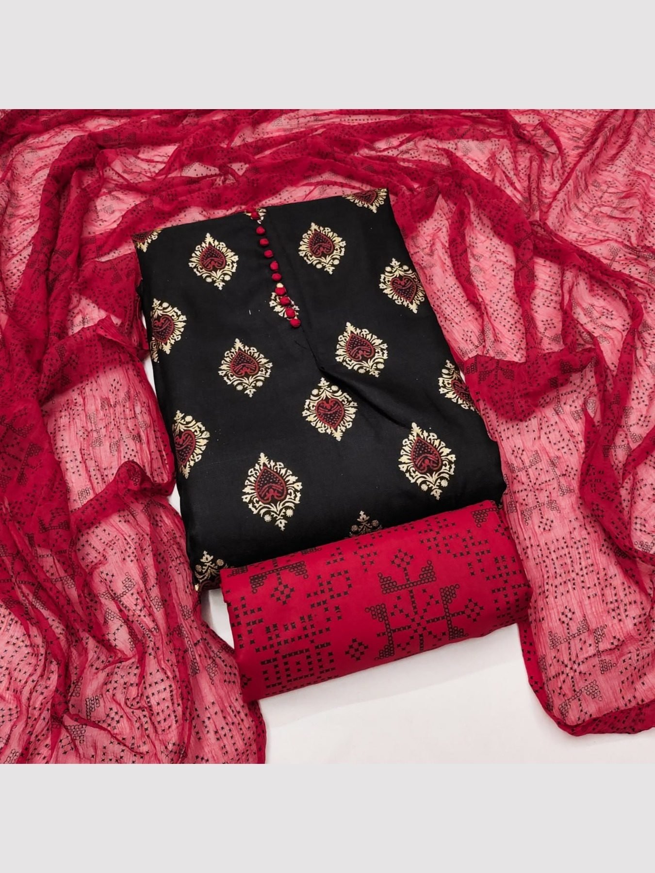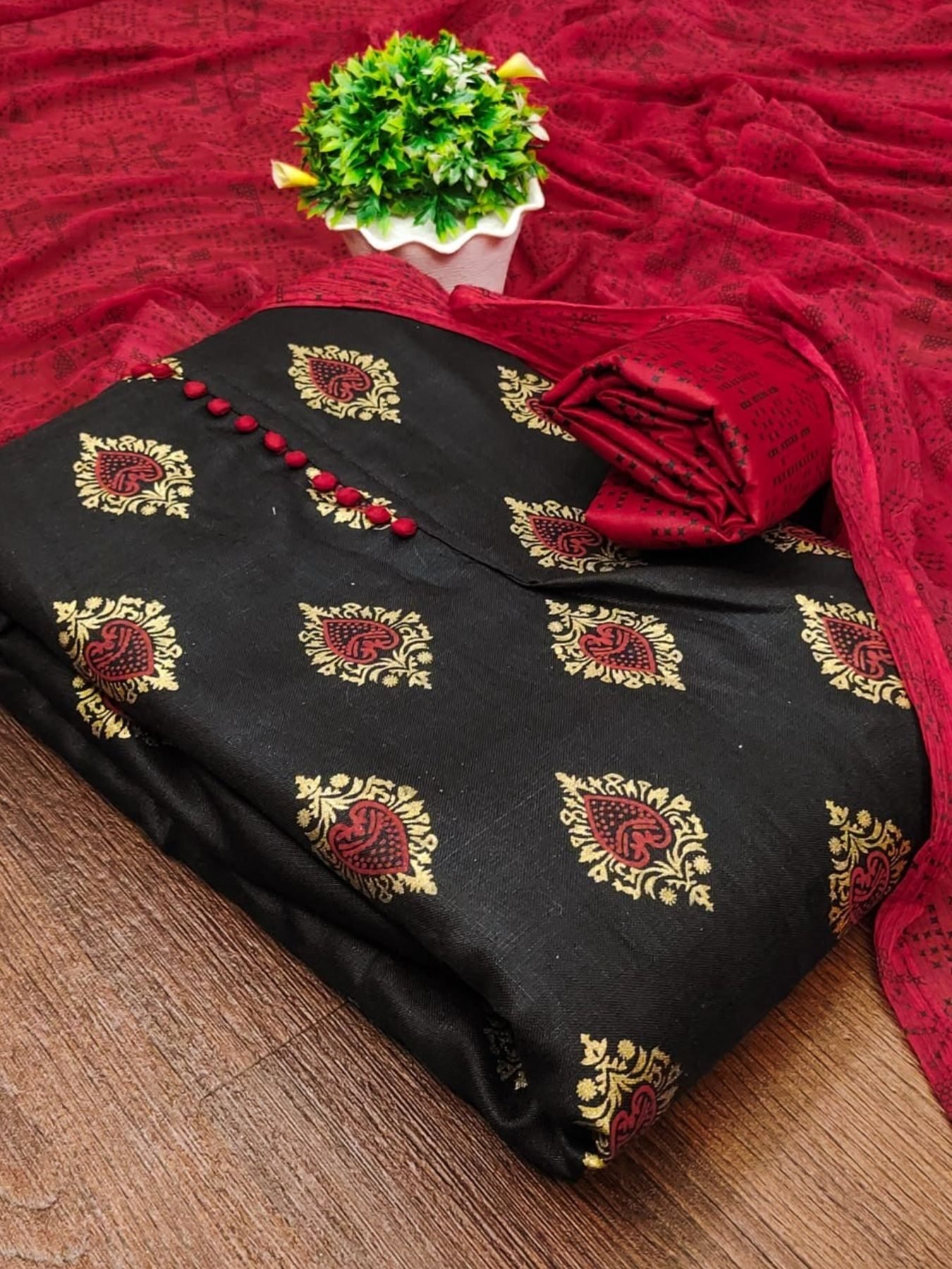 Exclusive Red Color Cotton Slub Print Dress Material Collection