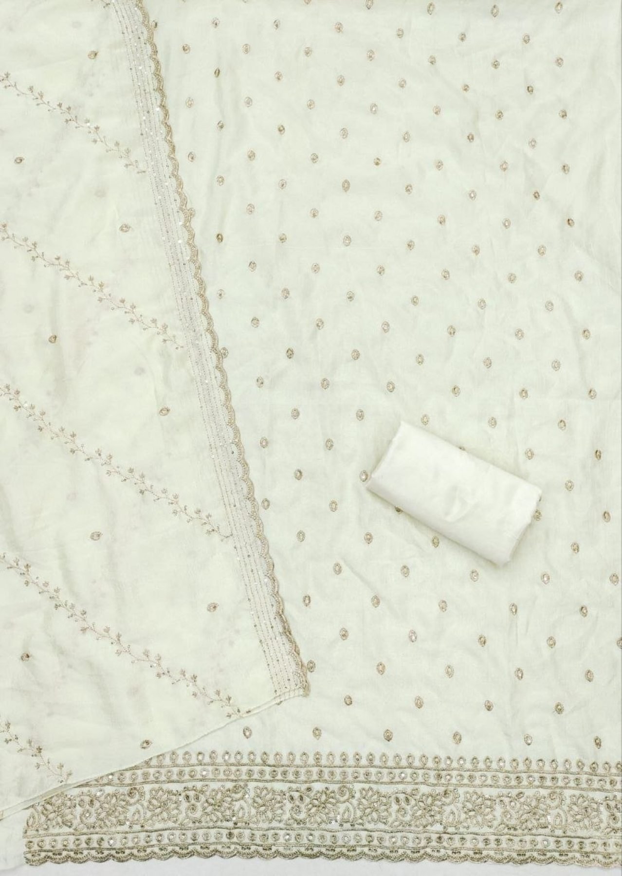 Exclusive White Vichitra Silk Dress Material with Sequins Work and Dupatta