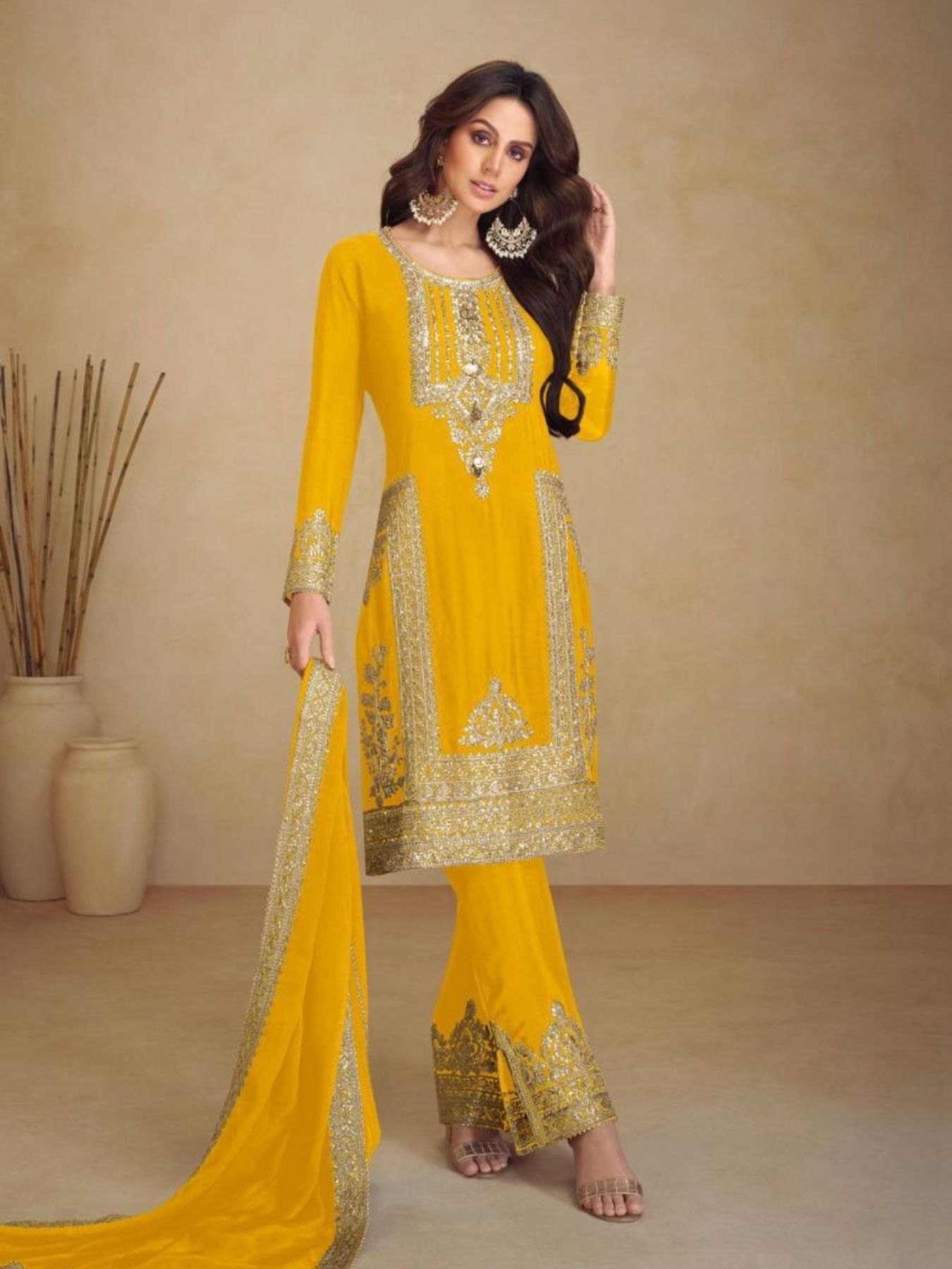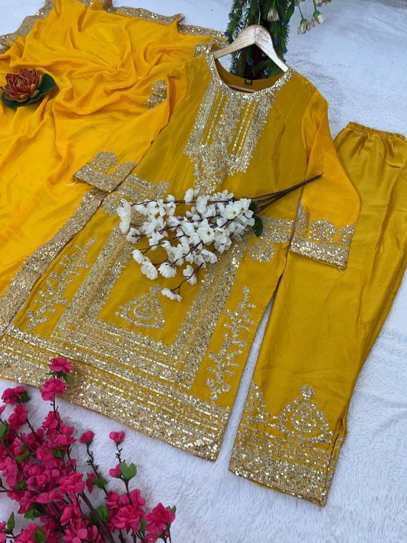 Exclusive yellow Chinon Sequence Embroidered Kurti Suit for Party Wear