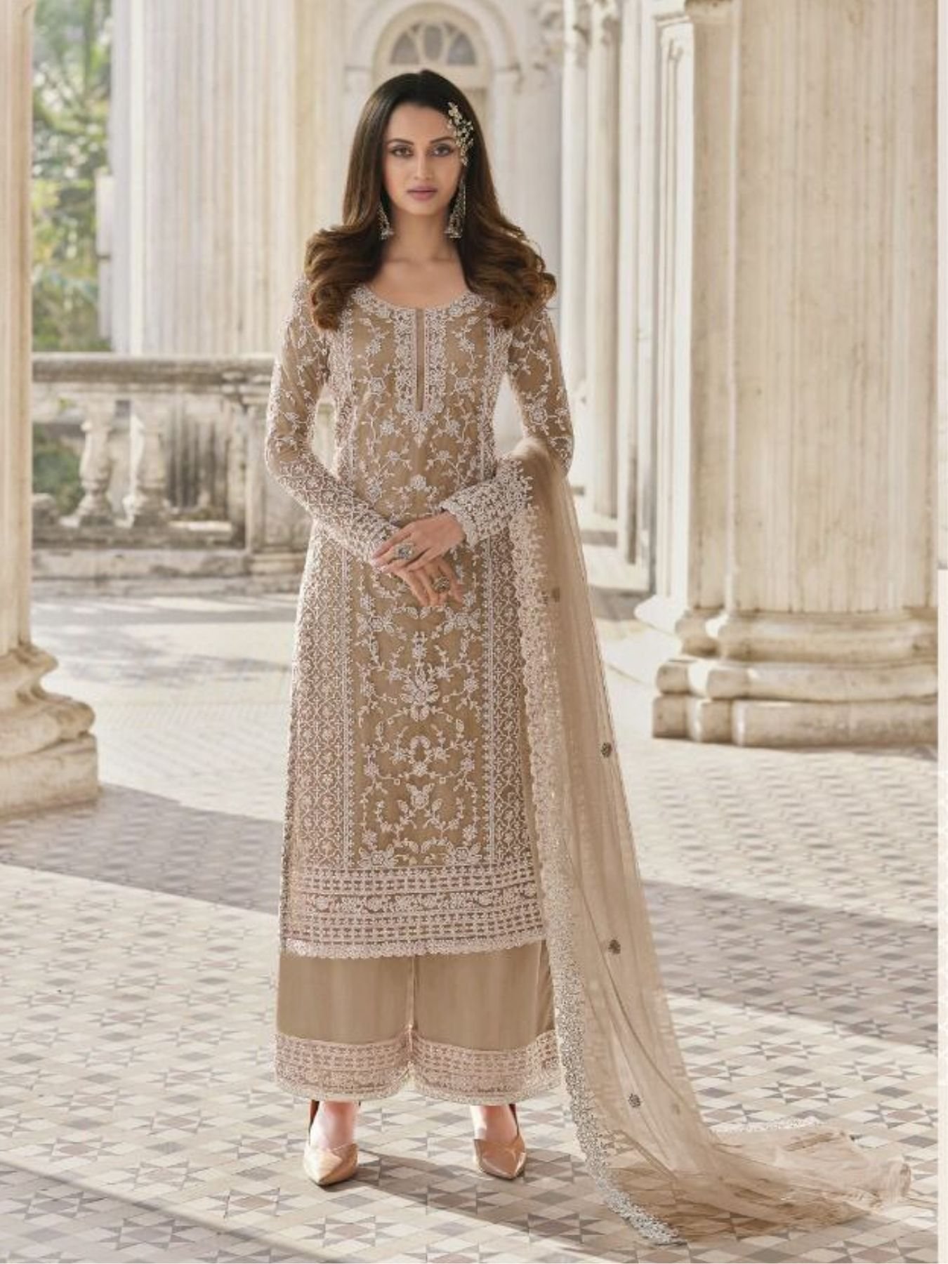 Exquisite Beige Engagements Wear Salwar Suit with Matching Dupatta for Exporters