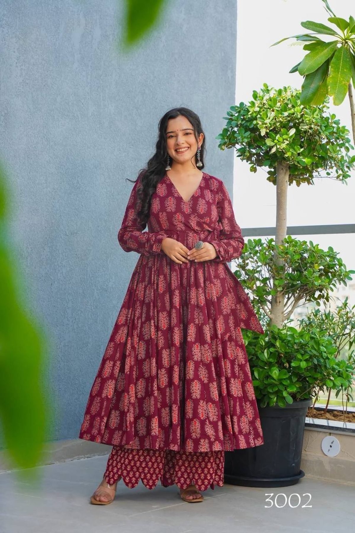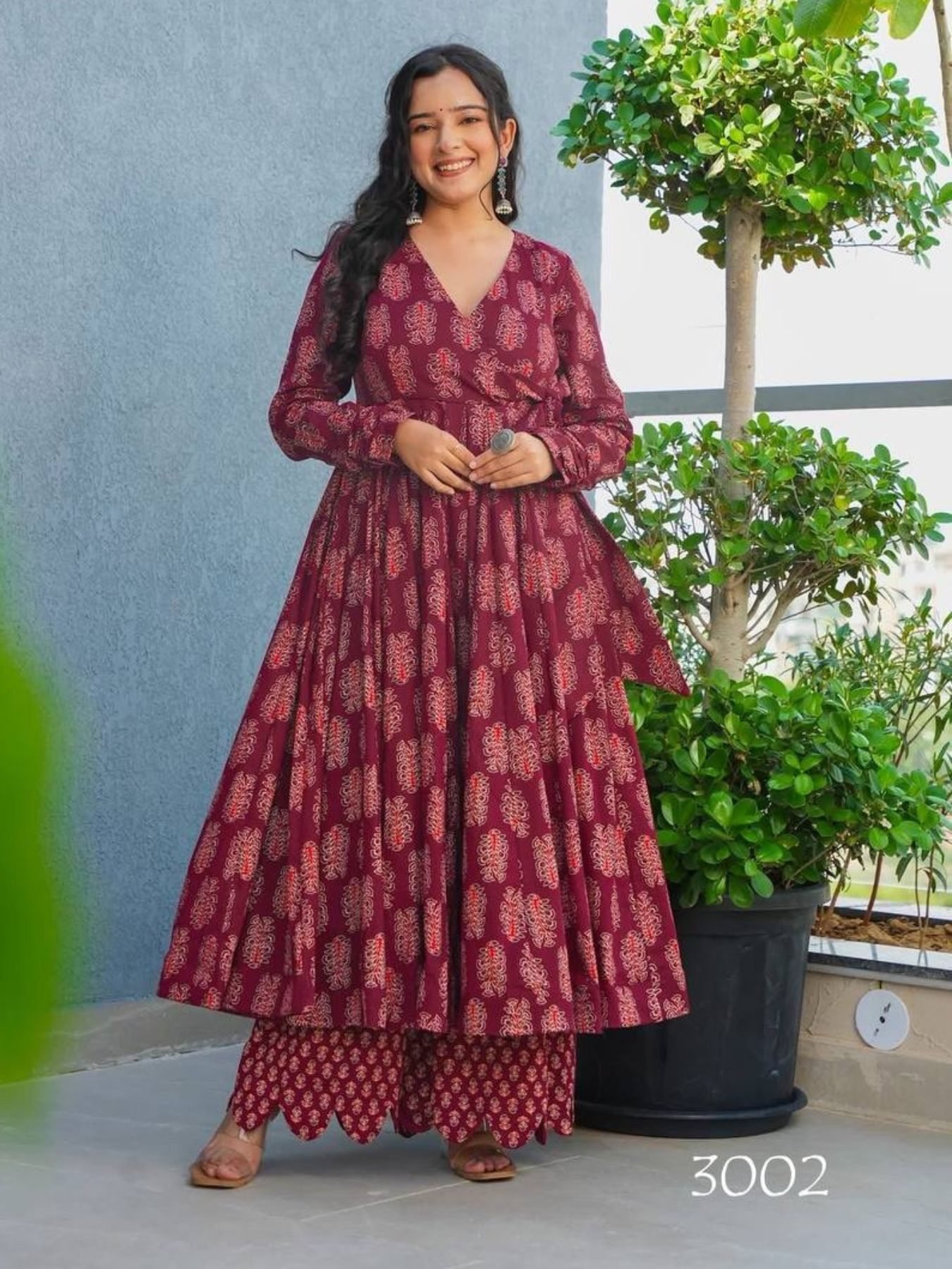Designed with a flattering 3.5-meter flair and comfortable rayon bottom for premium daily and festive wear.