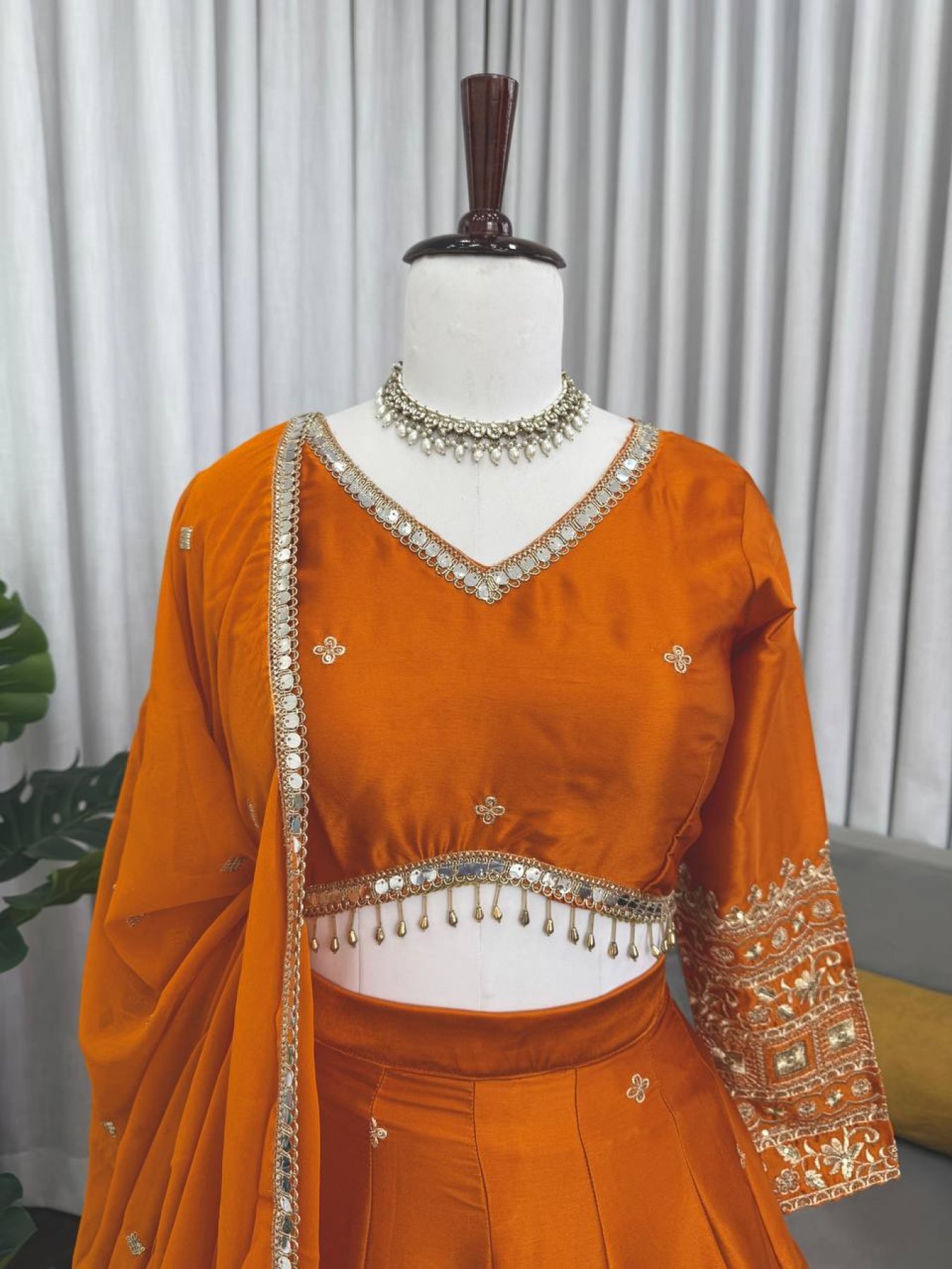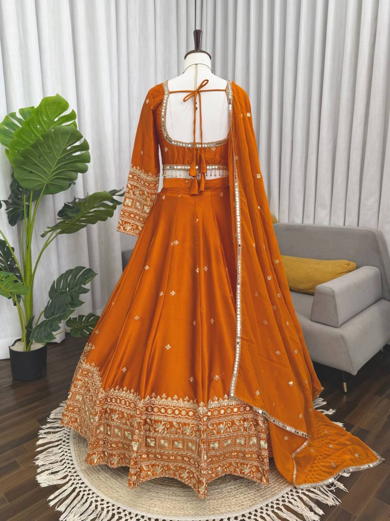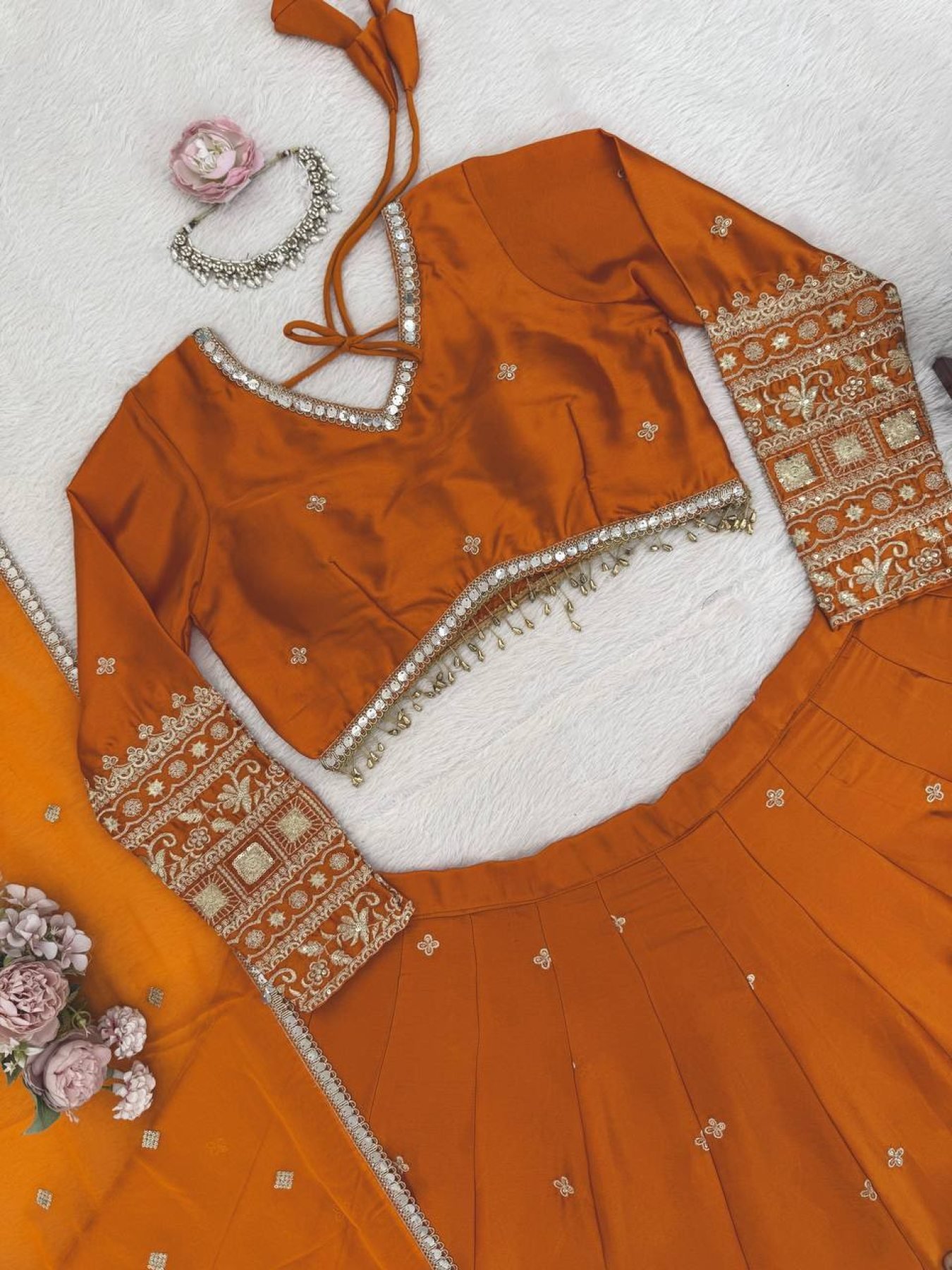 Fabdeal Villa Orange Color Japan Satin Fabric Sequence Work Lehenga Choli