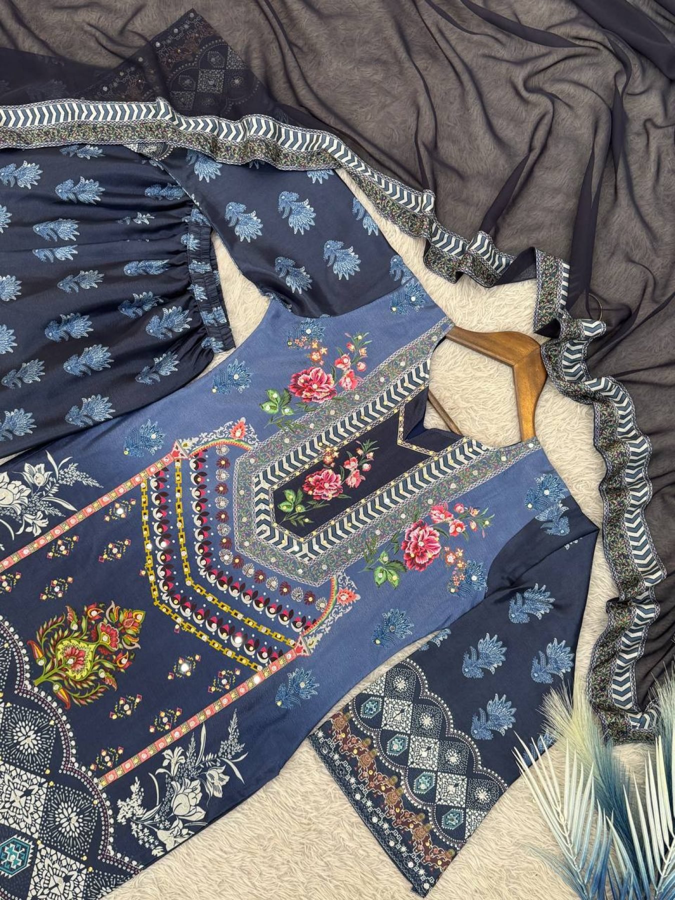 Size ChartThis stylish chinon silk sharara suit showcases detailed digital printing combined with real mirror and stone hand embroidery for a luxurious appeal. Ideal for festive wear, wedding functions, and party occasions, the fully stitched set ensures comfort and elegance. A perfect collection for boutiques, resellers, and exporters seeking trending ethnic wear at manufacturer pricing.