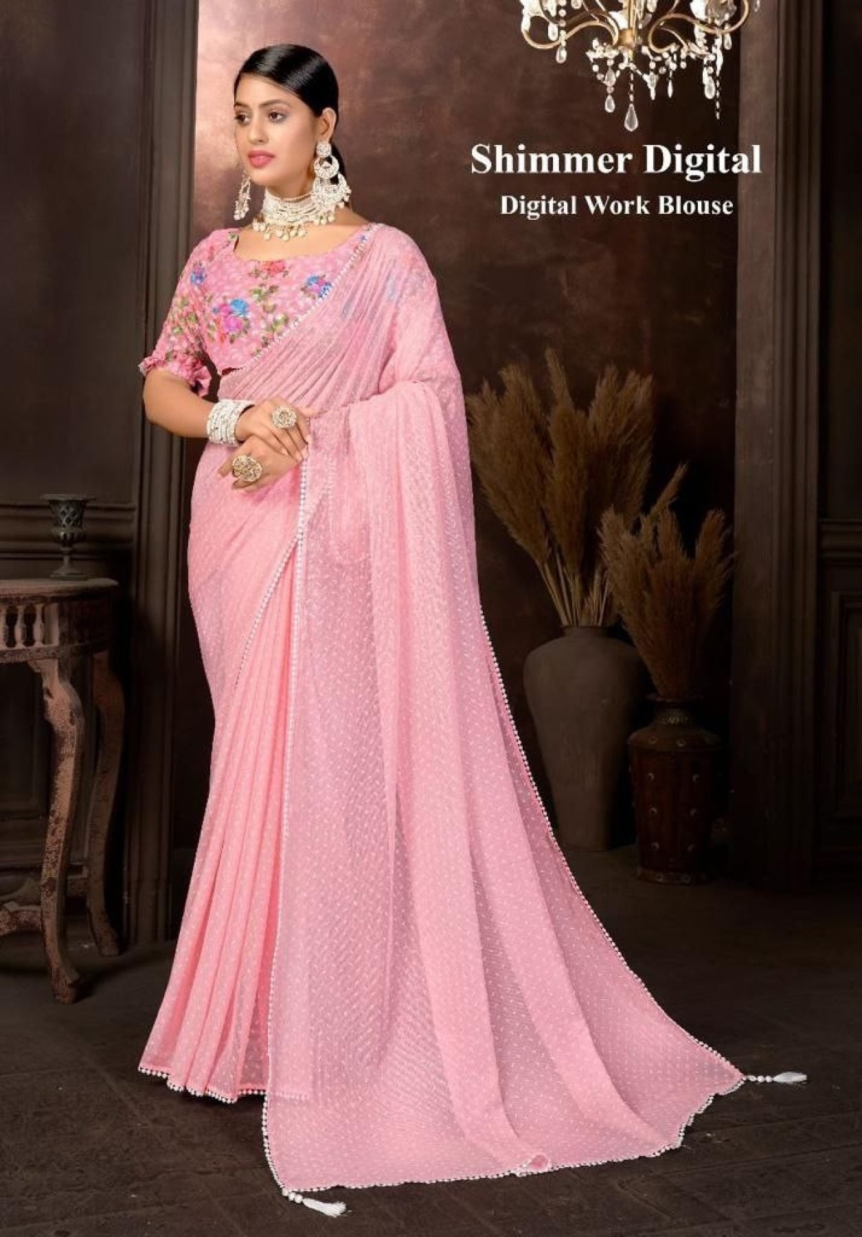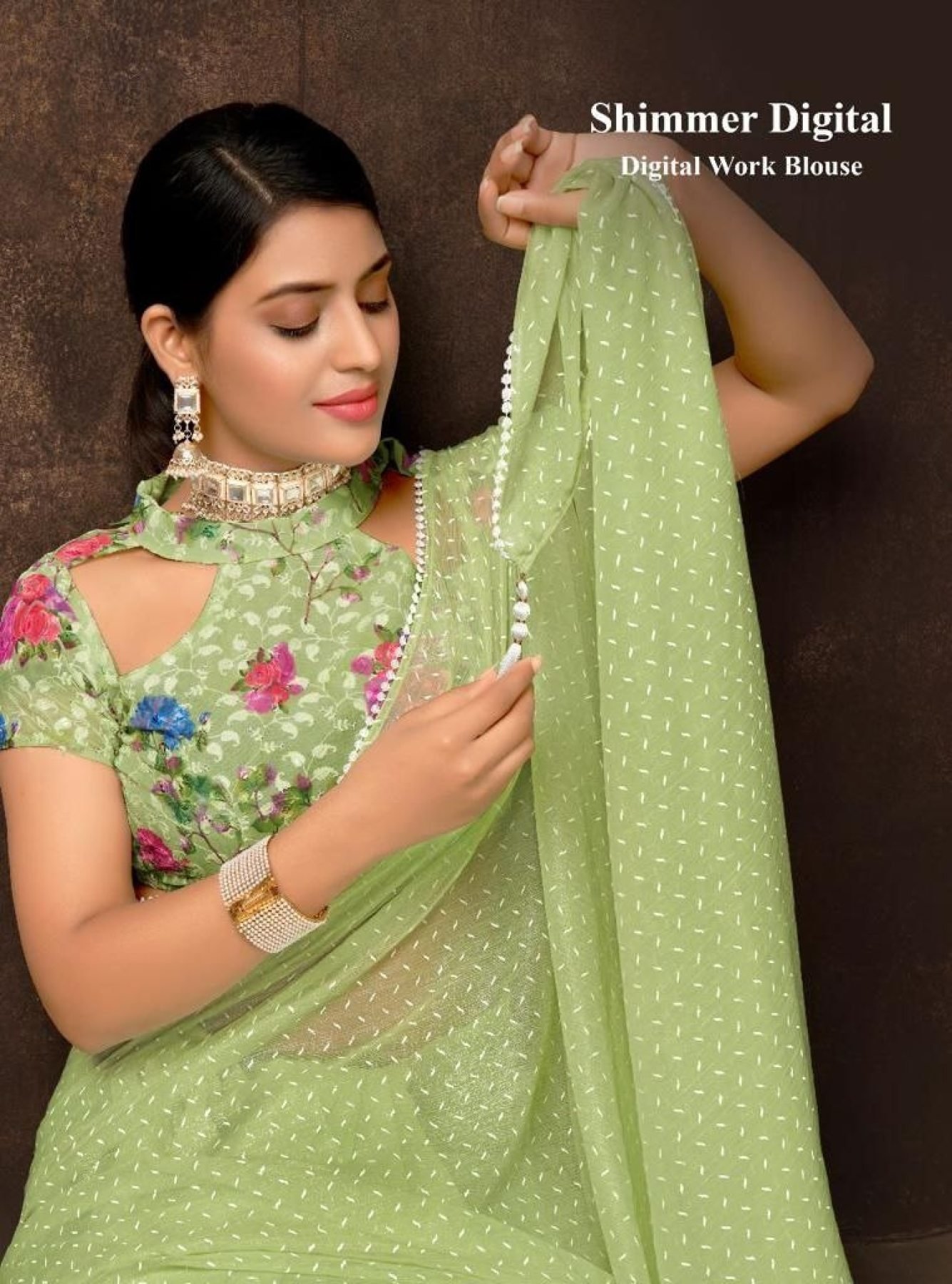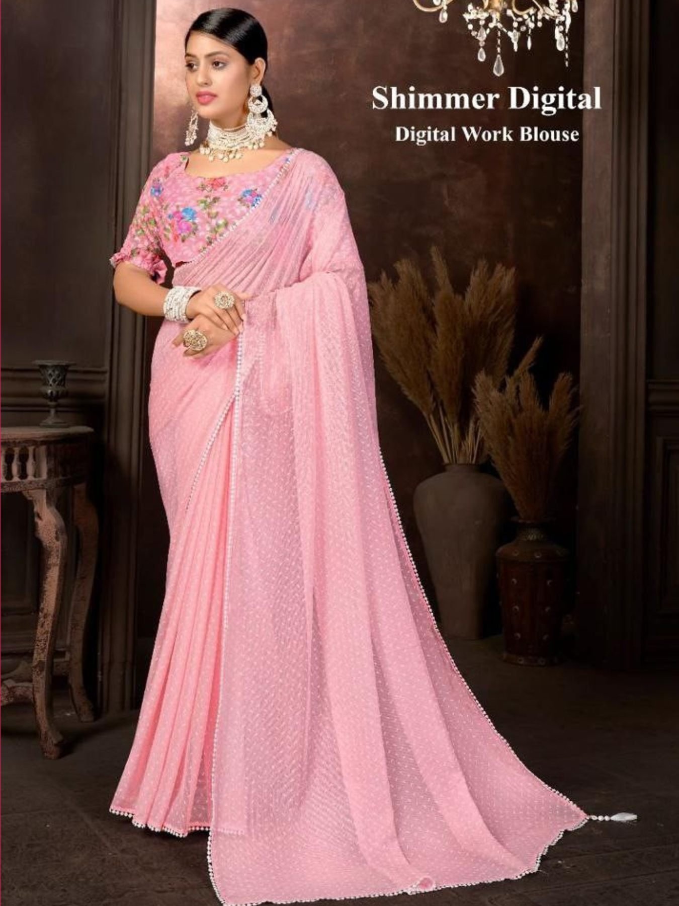 Blouse fabric: 60 gram georgette. With heavy Karachi work with digital print.....