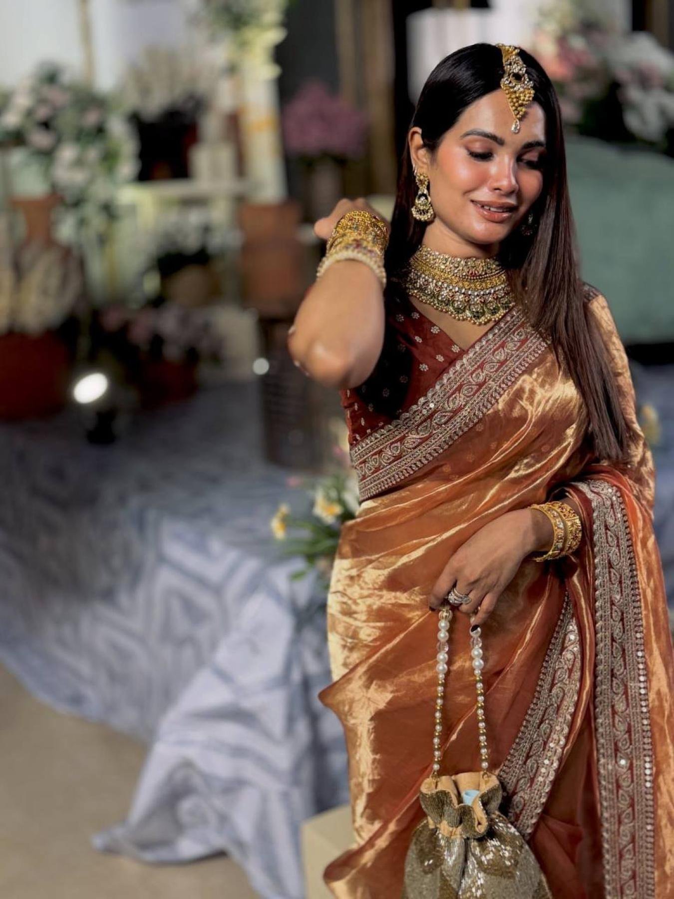 Expertly handcrafted for a contemporary aesthetic, this designer saree captures the sparkle of every occasion while ensuring luxurious comfort.