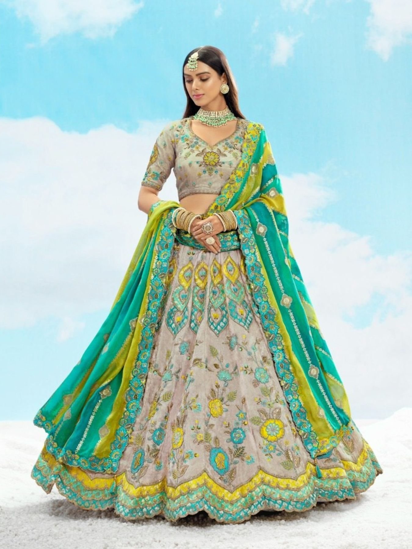 Fancy Silk Wedding Wear Lehenga in Multi Color With Embroidery work