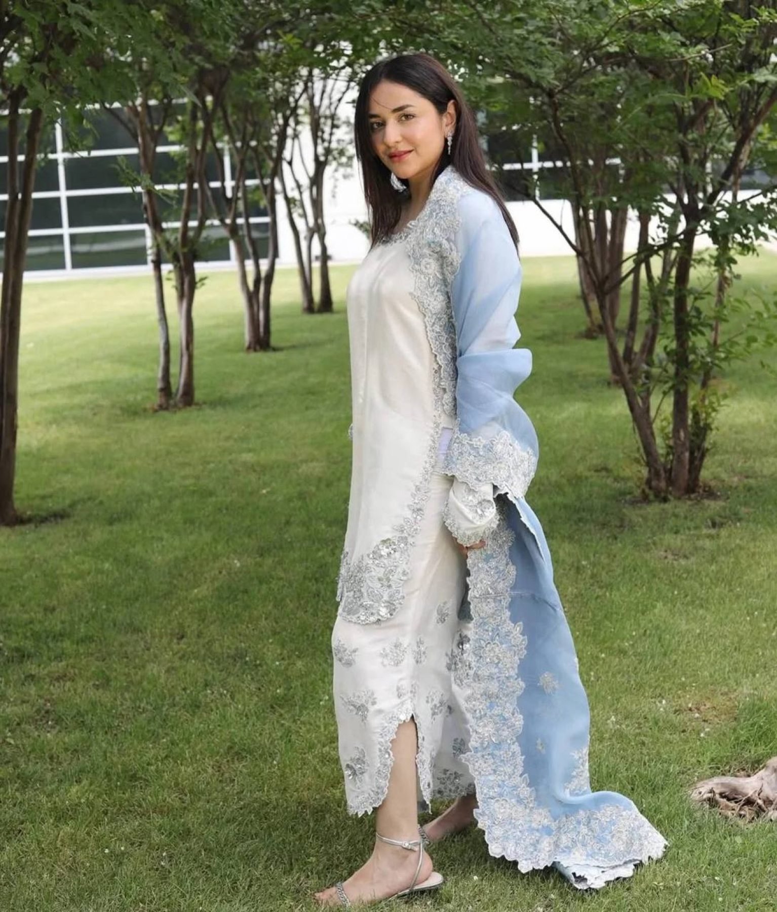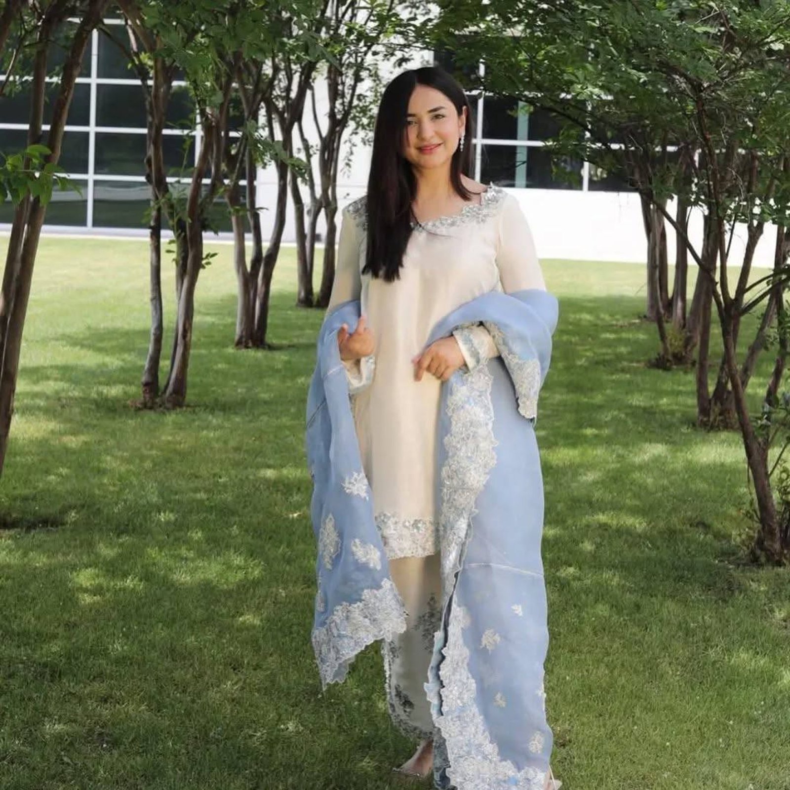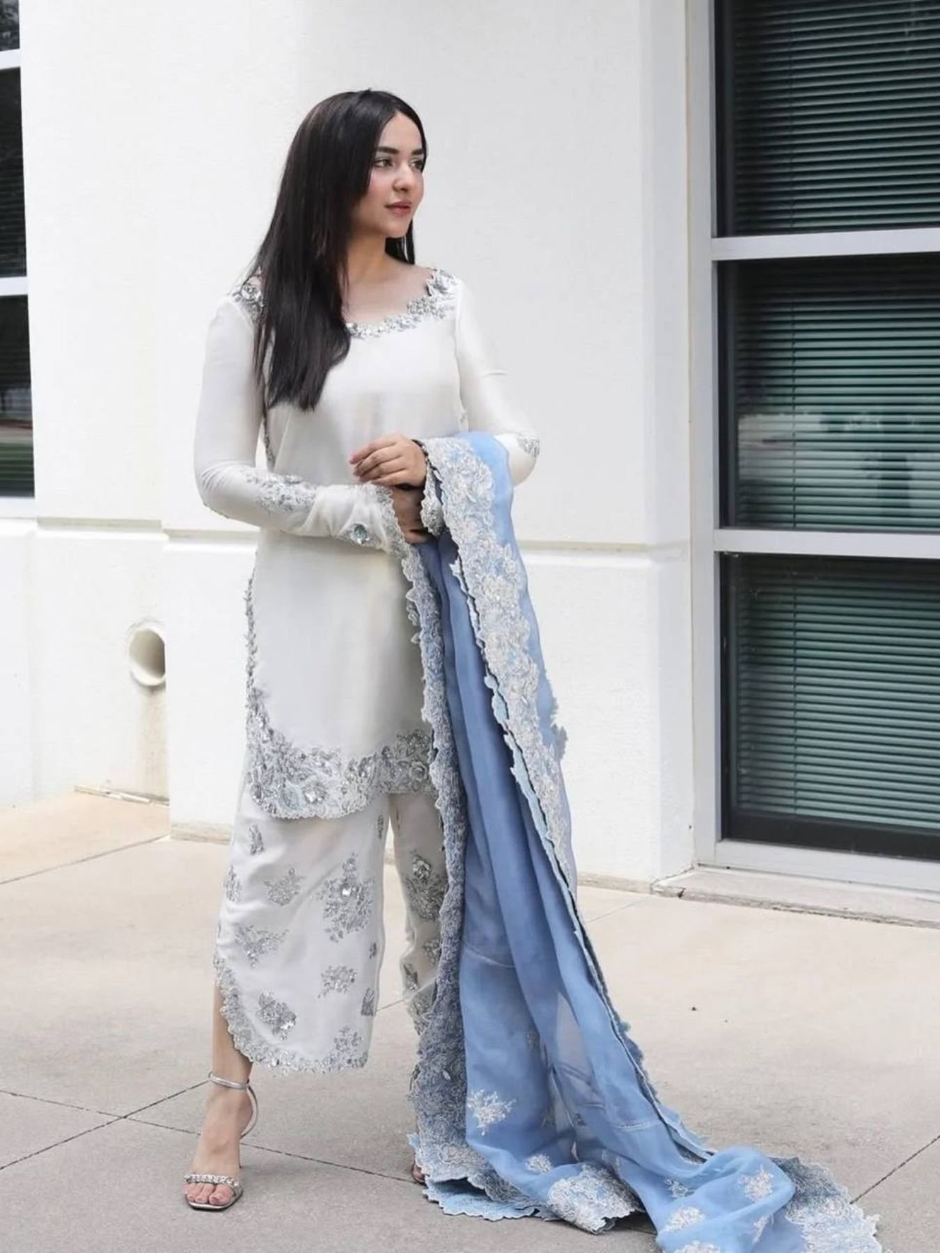 Size ChartStep into a refined and viral festive look with this elegant roman glass set featuring detailed 3 mm sequence embroidery for a subtle yet rich designer finish. Paired with a comfortable matching plazzo and a soft organza dupatta with intricate cutwork, this outfit blends modern elegance with traditional charm, making it perfect for parties, festive occasions, and stylish ethnic wear.