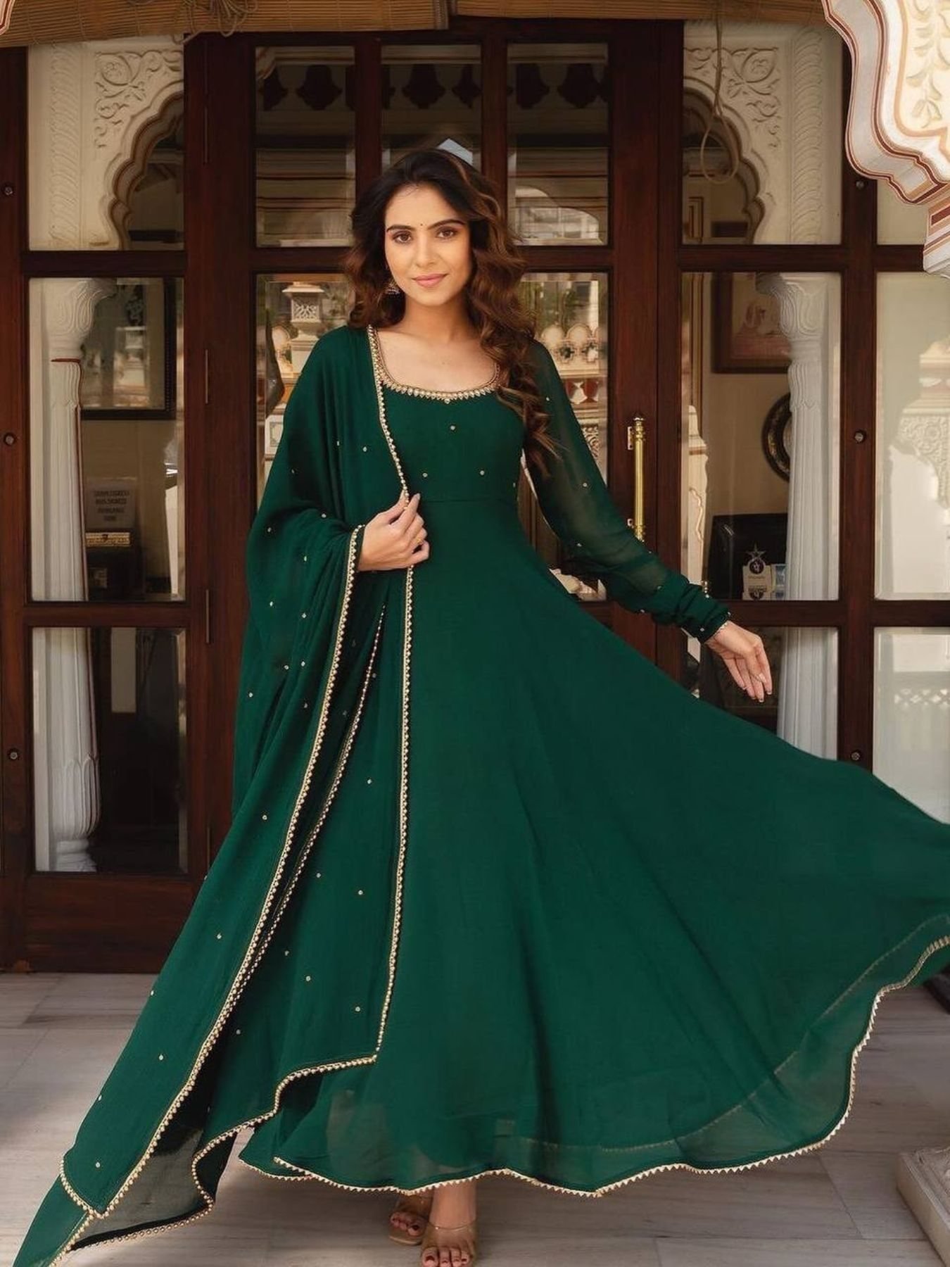 Festival Wear Wear Green Color Georgette Gown With Dupatta