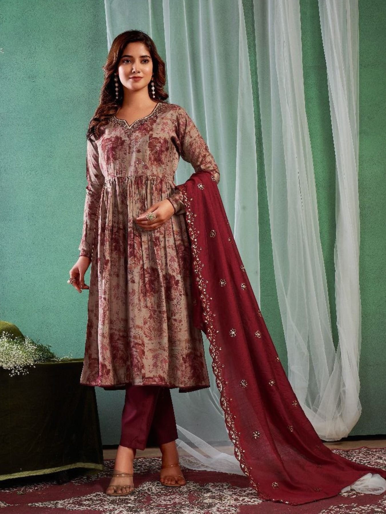 Color :- Shades of Sand & Rubine