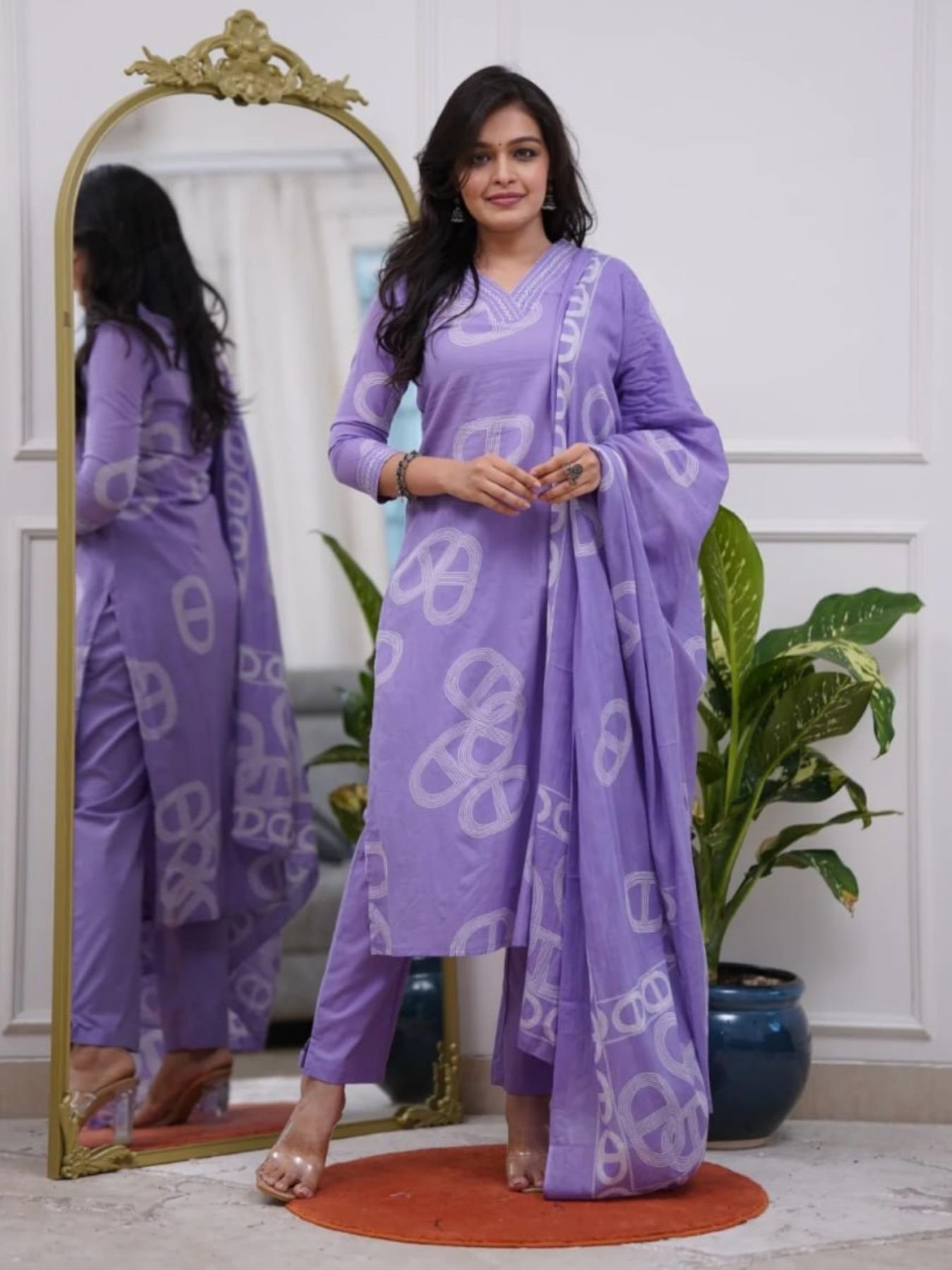 Fresh Lavender Chanderi Embroidered Kurti Set with Printed Dupatta for Resellers