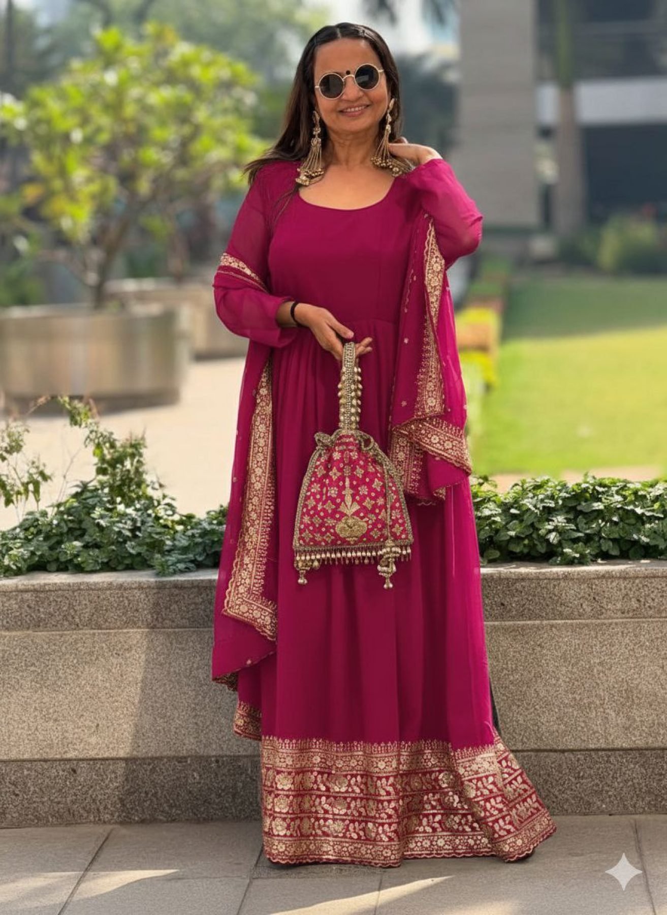 Step into elegance with this designer short Anarkali gown set, created for stylish comfort and festive charm. Crafted from heavy georgette, the gown features a beautiful round neck highlighted with embroidery and sequin work, offering a breezy and graceful silhouette. The attached micro cotton inner ensures all-day comfort, paired with a soft micro cotton pant with elastic waist. Completed with a fox georgette dupatta finished with four-side embroidery, this outfit is perfect for parties, festive occasions, and special gatherings, ideal for boutiques, wholesalers, and international buyers.